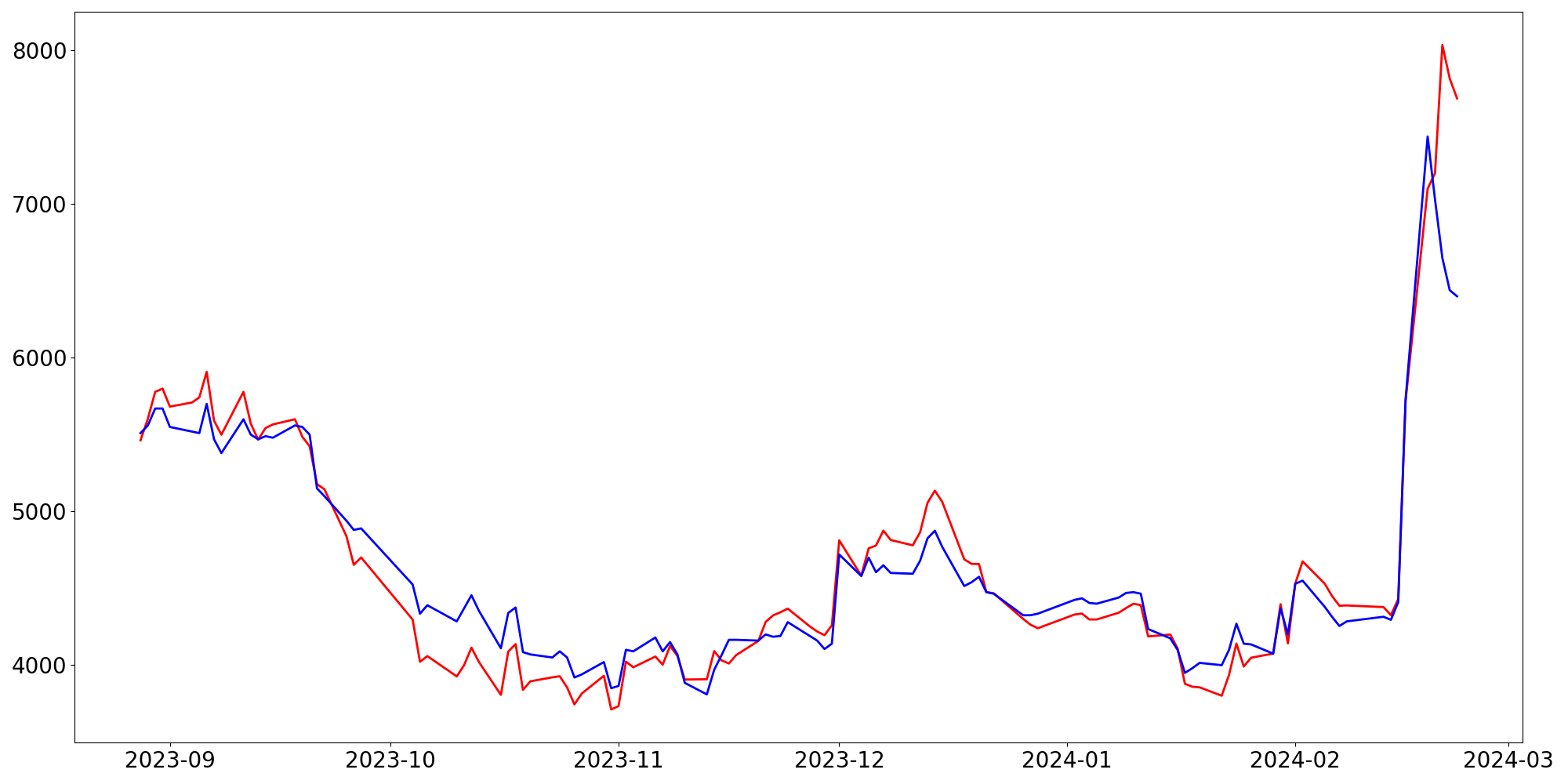 [ - : 실제값(종가) / - : 예측값(종가) ]
