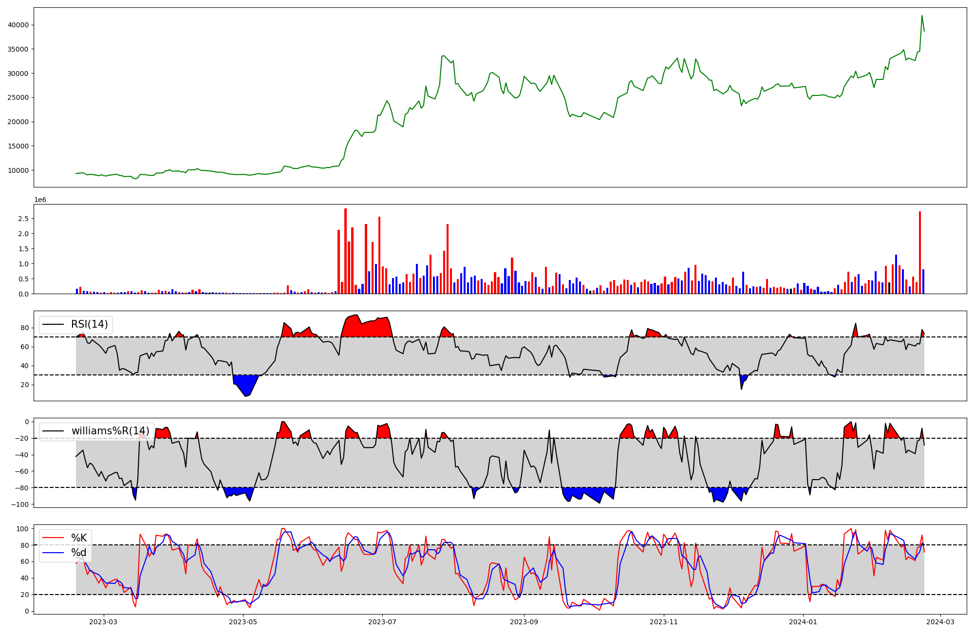 RSI | Williams %R | stochastic(%K) | |