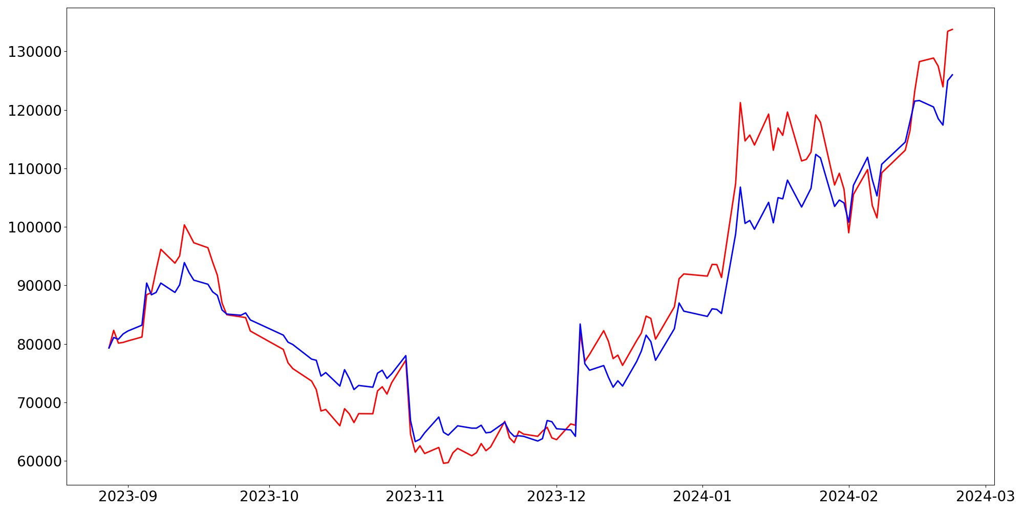 [ - : 실제값(종가) / - : 예측값(종가) ]