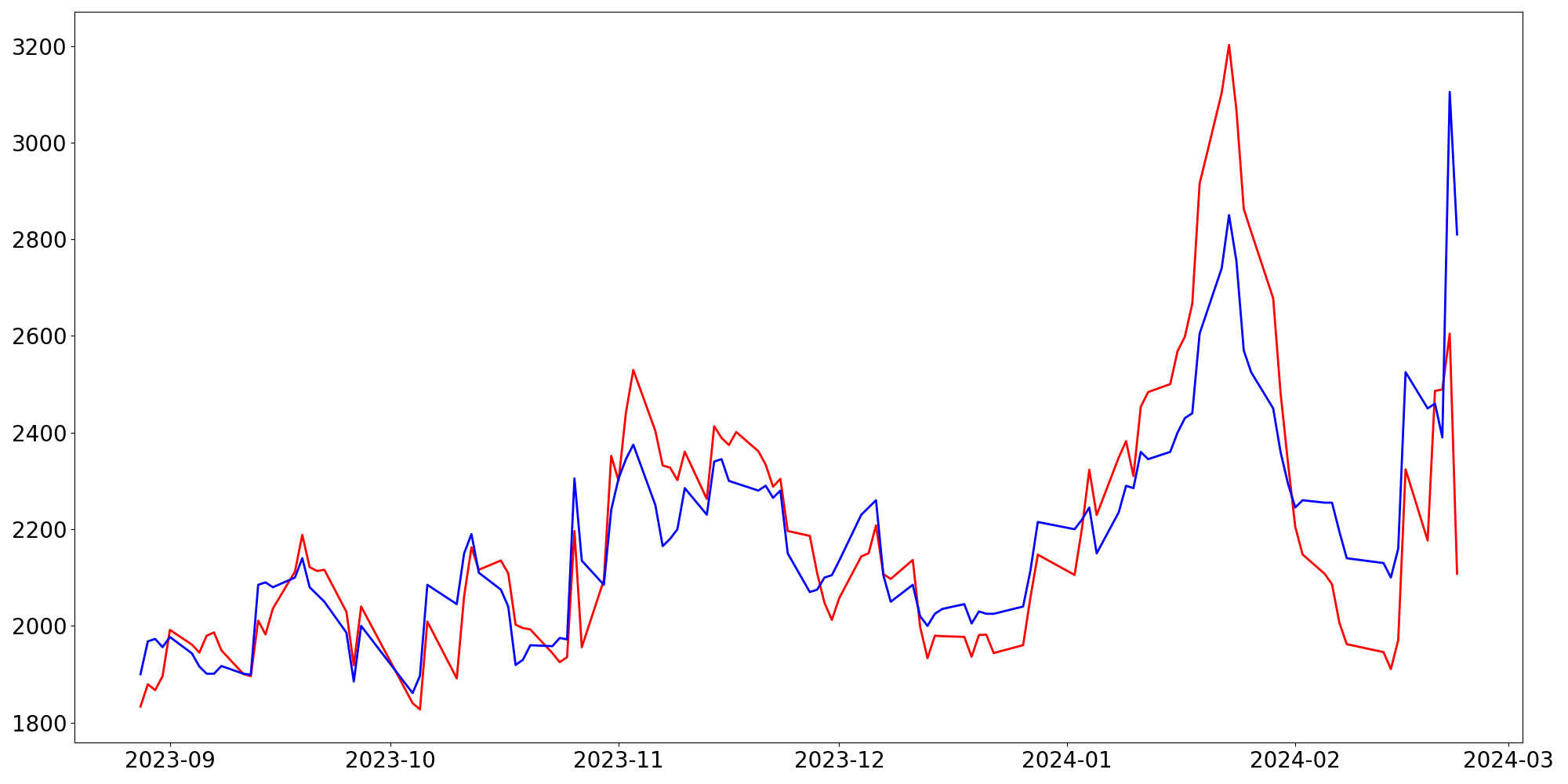 [ - : 실제값(종가) / - : 예측값(종가) ]