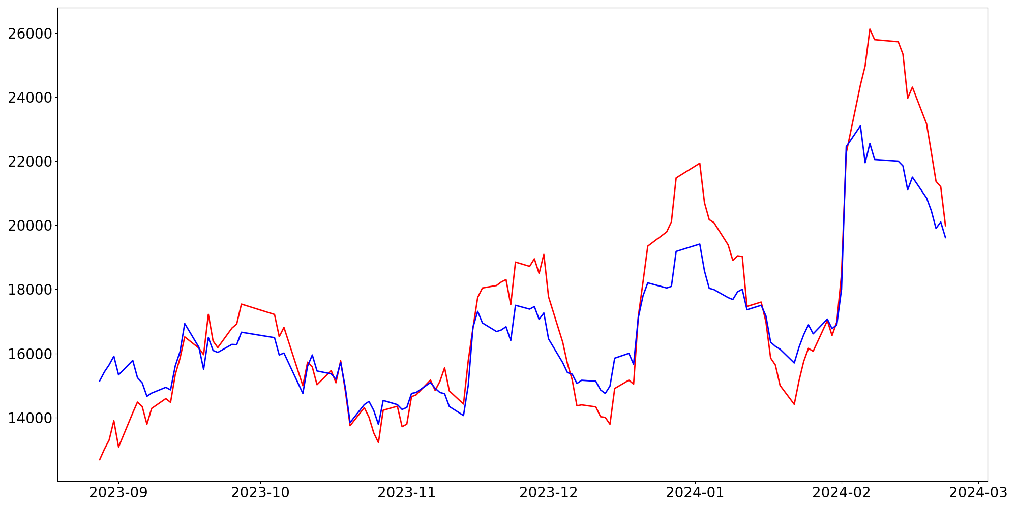 [ - : 실제값(종가) / - : 예측값(종가) ]