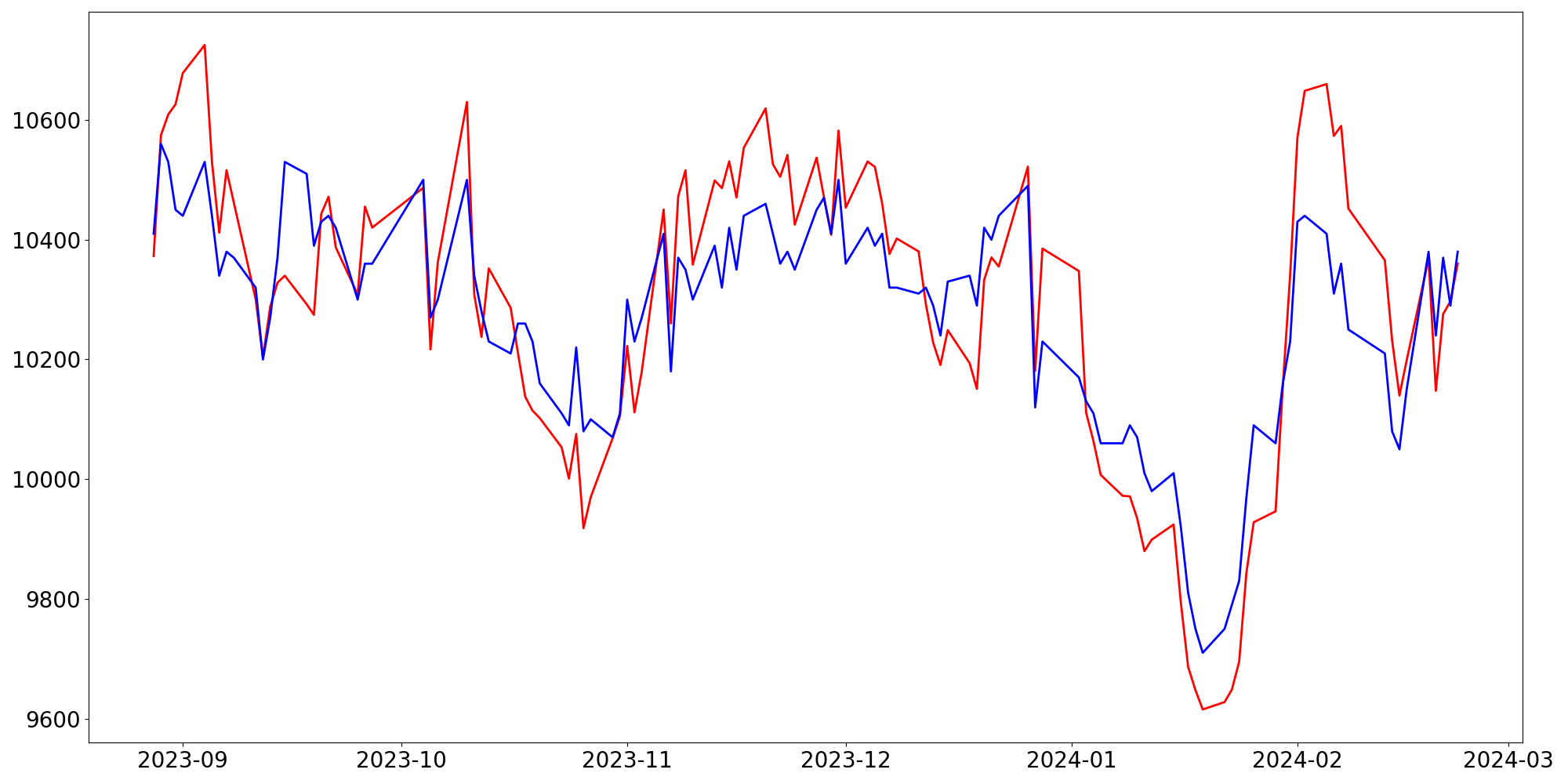 [ - : 실제값(종가) / - : 예측값(종가) ]