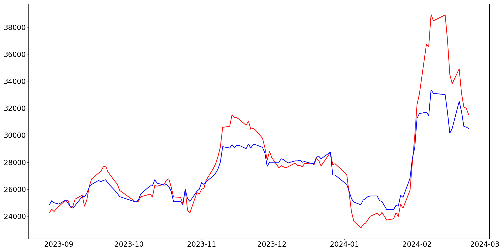 [ - : 실제값(종가) / - : 예측값(종가) ]