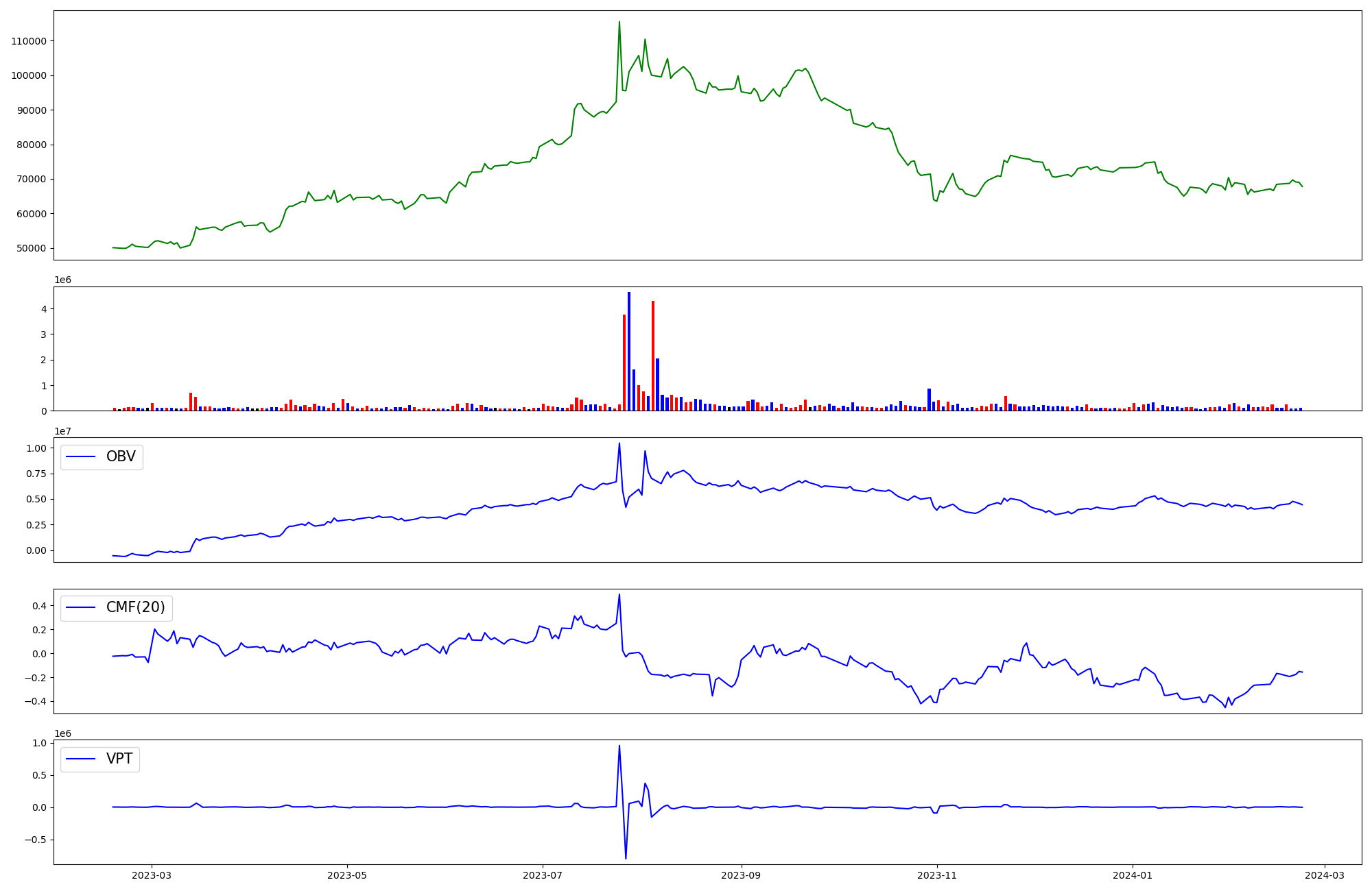 | OBV | CMF | VPT | |
