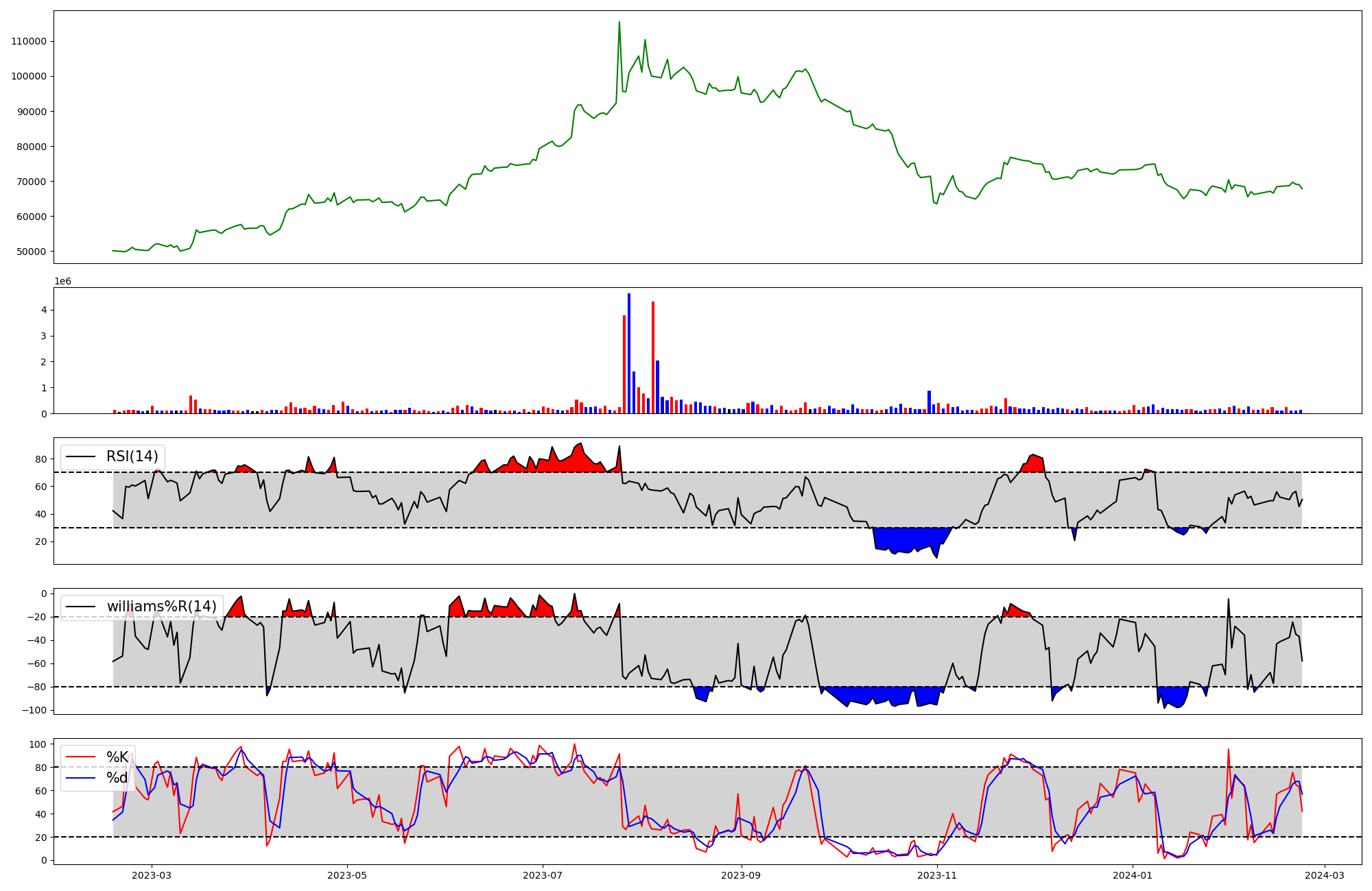 | RSI | Williams %R | stochastic(%K) | |