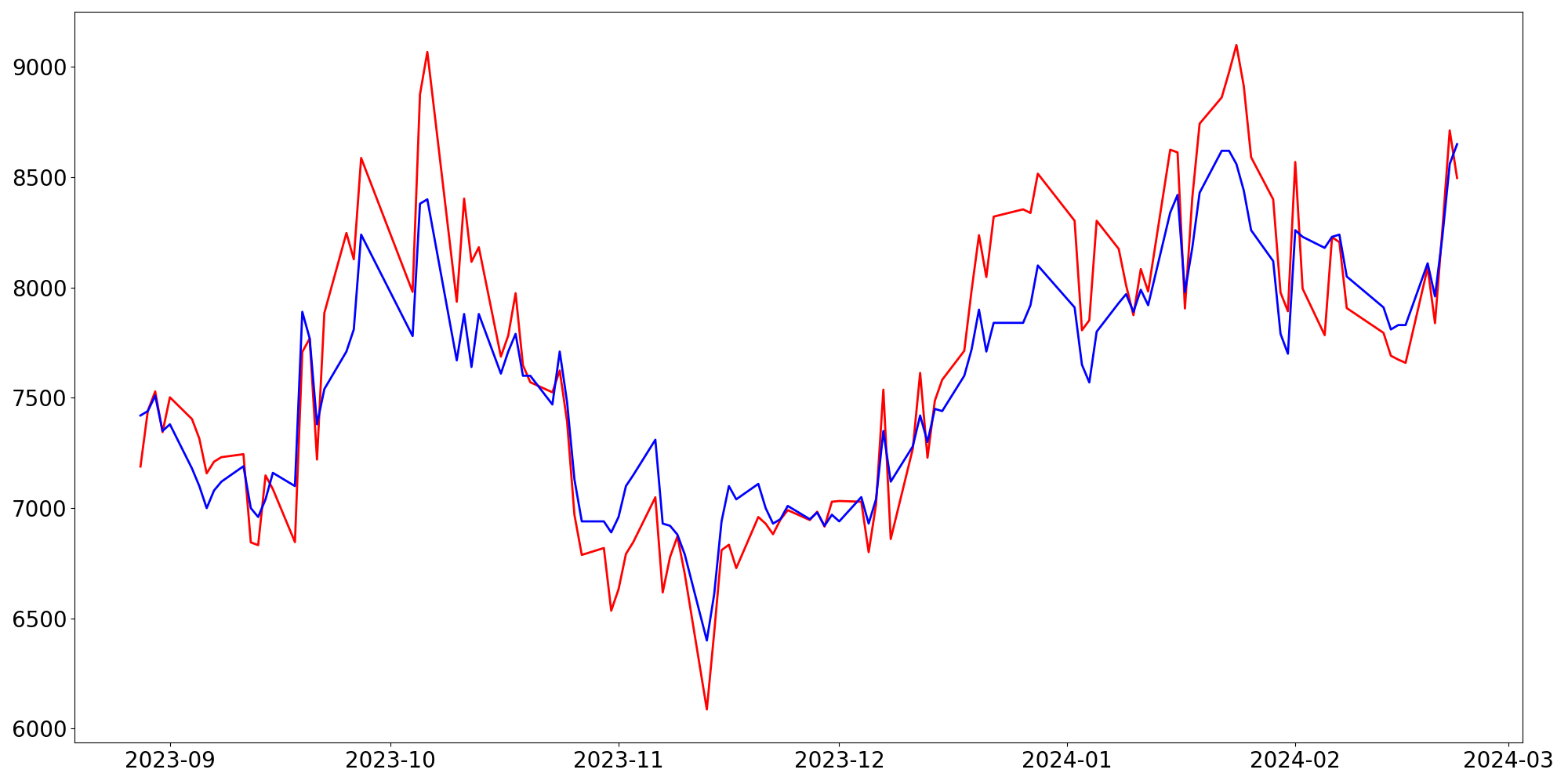 [ - : 실제값(종가) / - : 예측값(종가) ]
