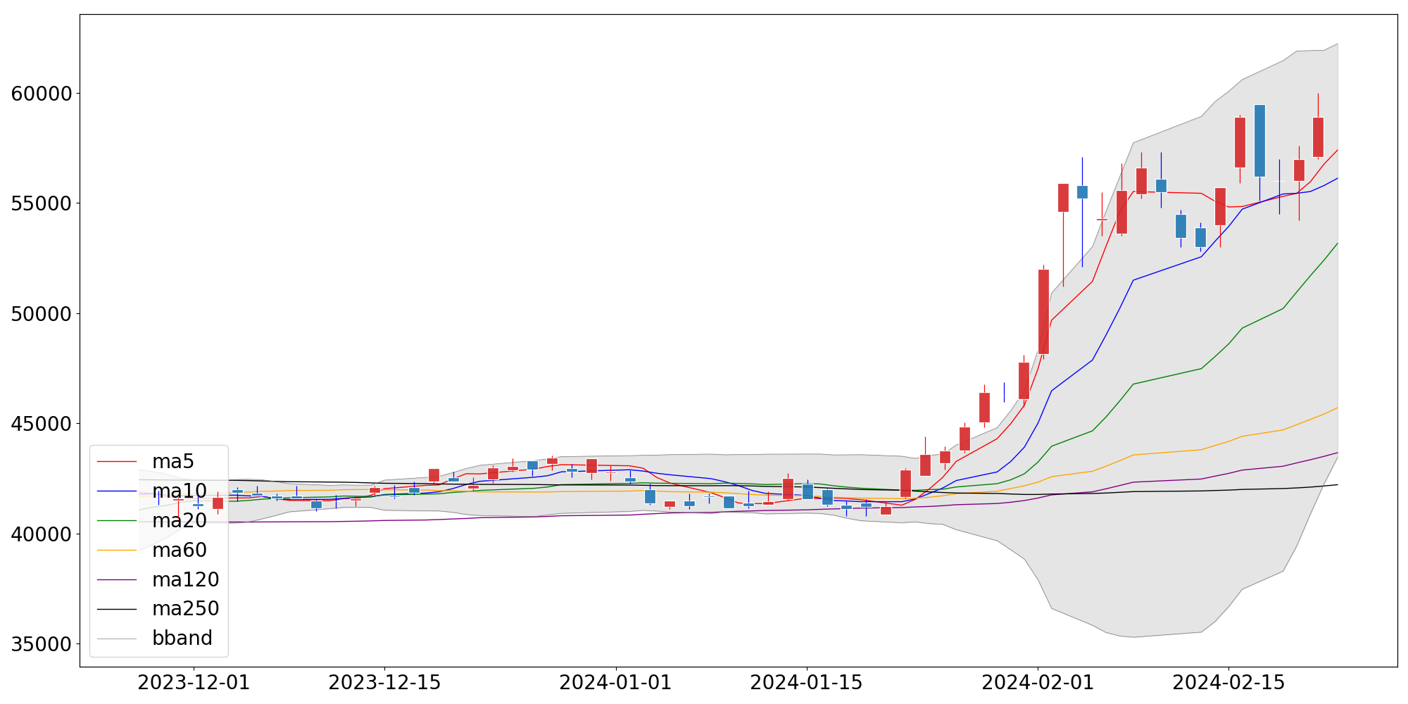 | 단순이동평균 | 57,400.00 | 56,120.00 | 53,165.00 |