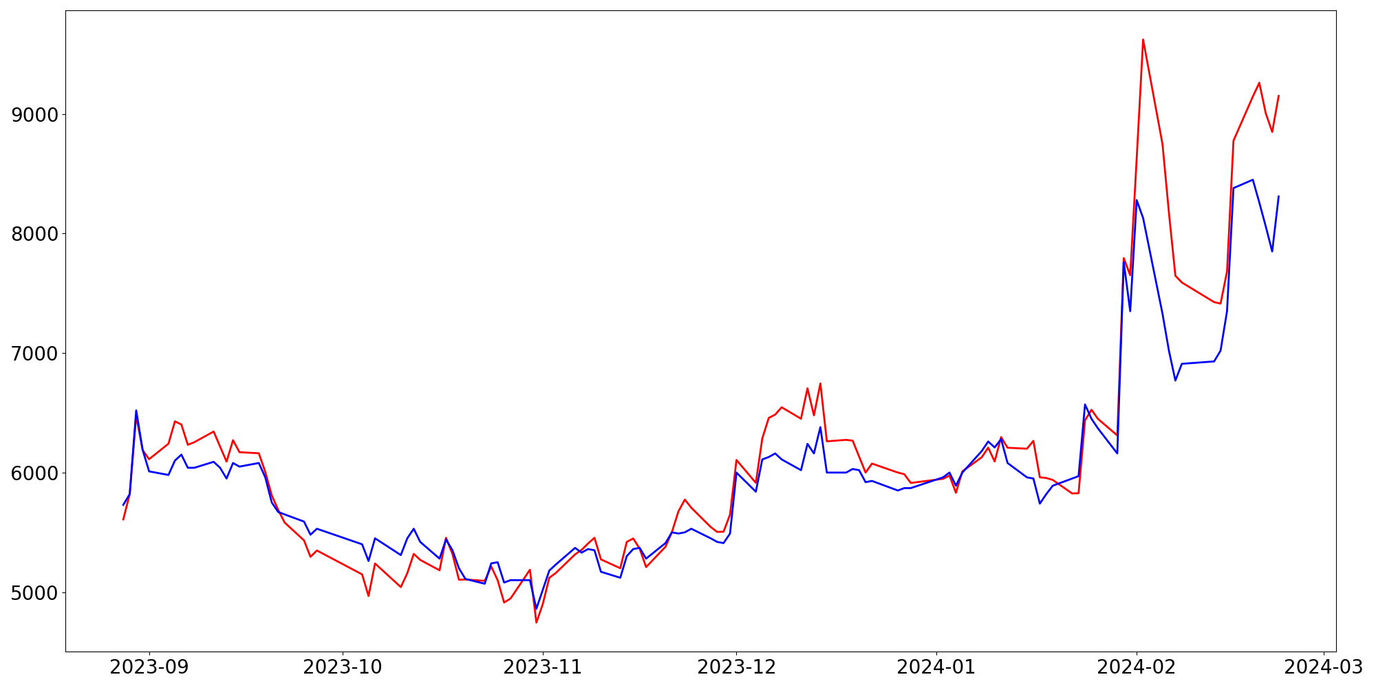 [ - : 실제값(종가) / - : 예측값(종가) ]