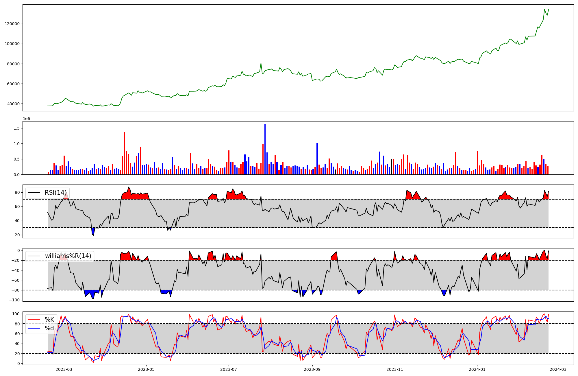 | RSI | Williams %R | stochastic(%K) | |