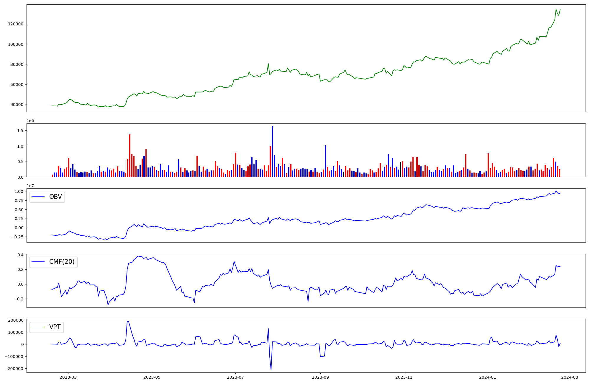 | OBV | CMF | VPT | |