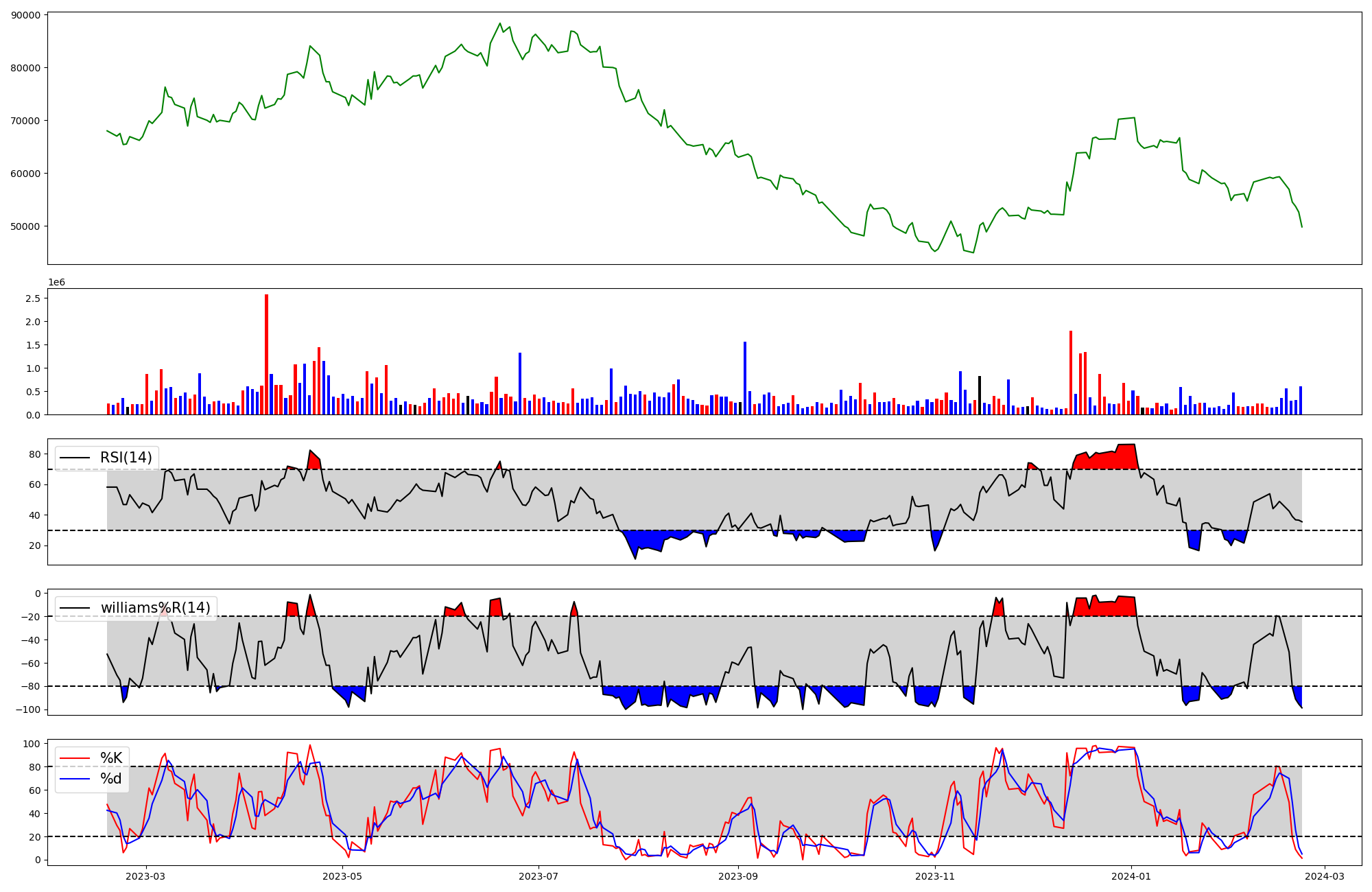 | RSI | Williams %R | stochastic(%K) | |