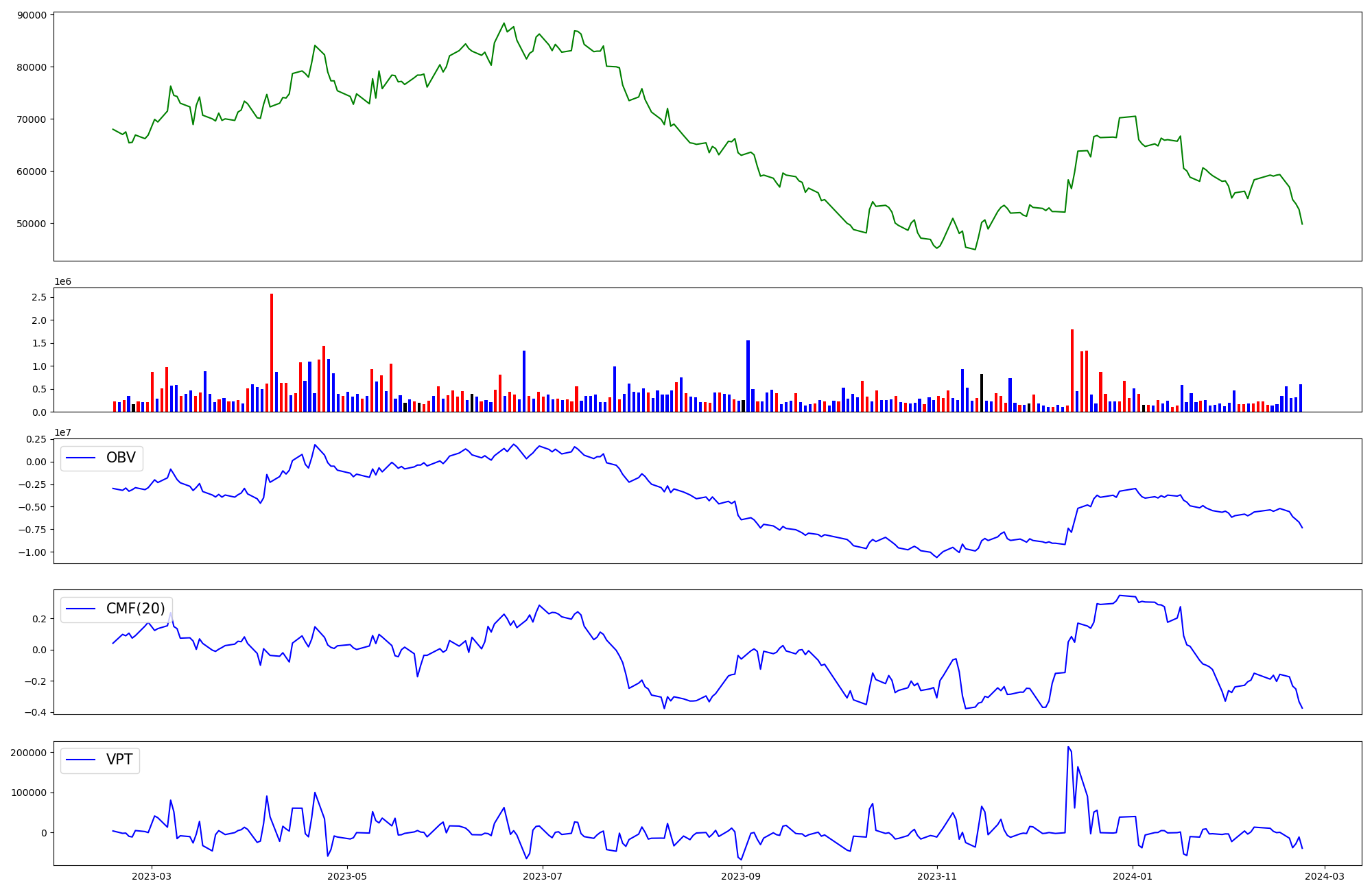 | OBV | CMF | VPT | |