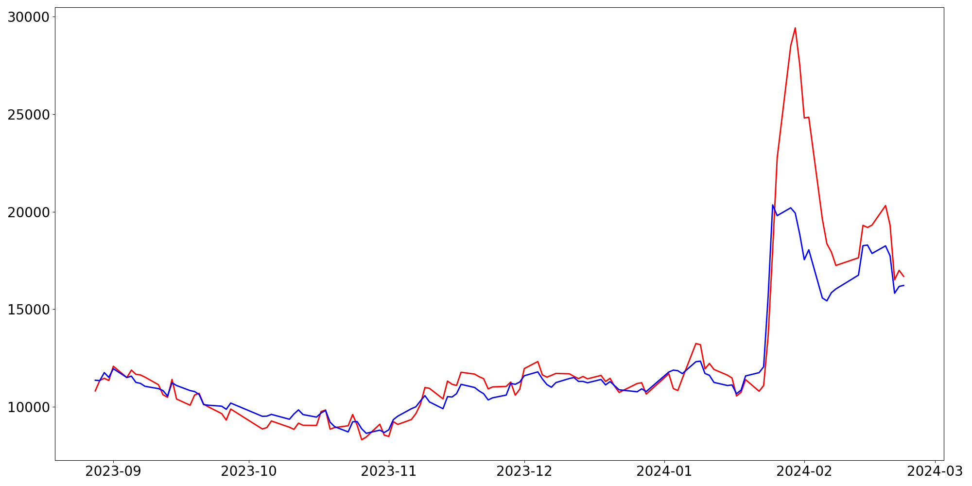 [ - : 실제값(종가) / - : 예측값(종가) ]
