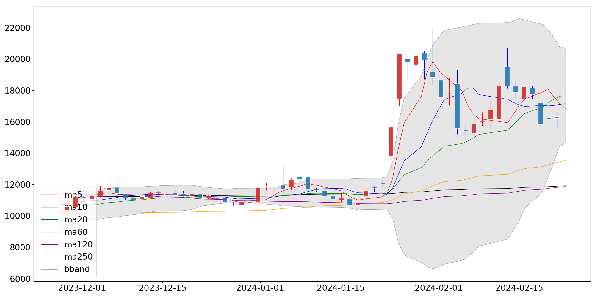 □ 장기 : 현재 종가가 장기(250일) 이동평균값(11,915원)을 상회 하여 장기적 추세 상승 중