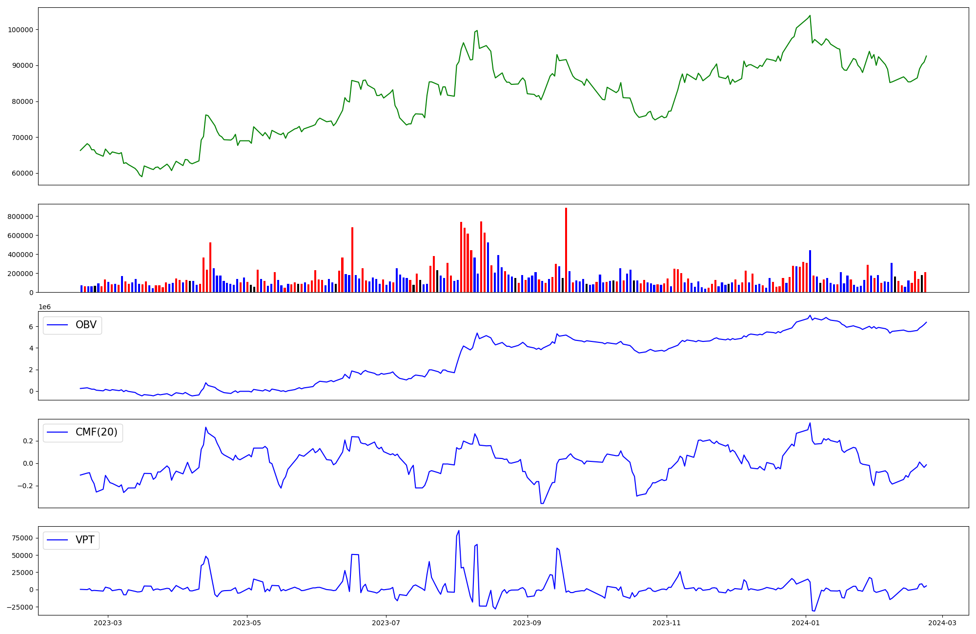 | OBV | CMF | VPT | |