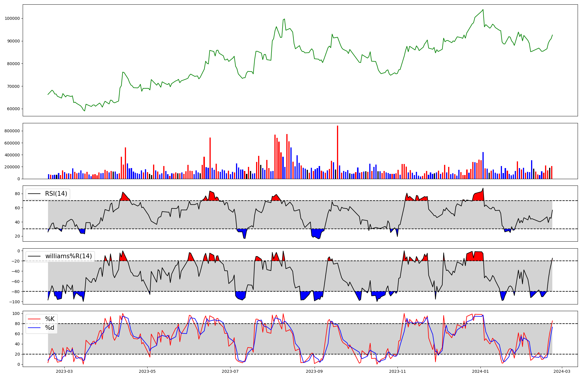 | RSI | Williams %R | stochastic(%K) | |