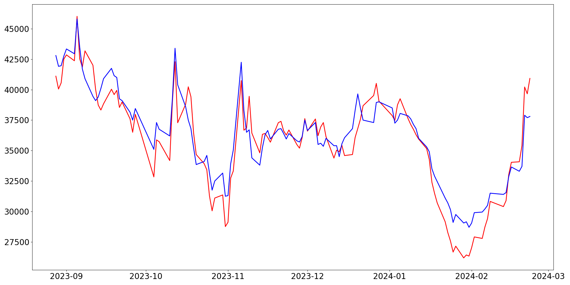 [ - : 실제값(종가) / - : 예측값(종가) ]