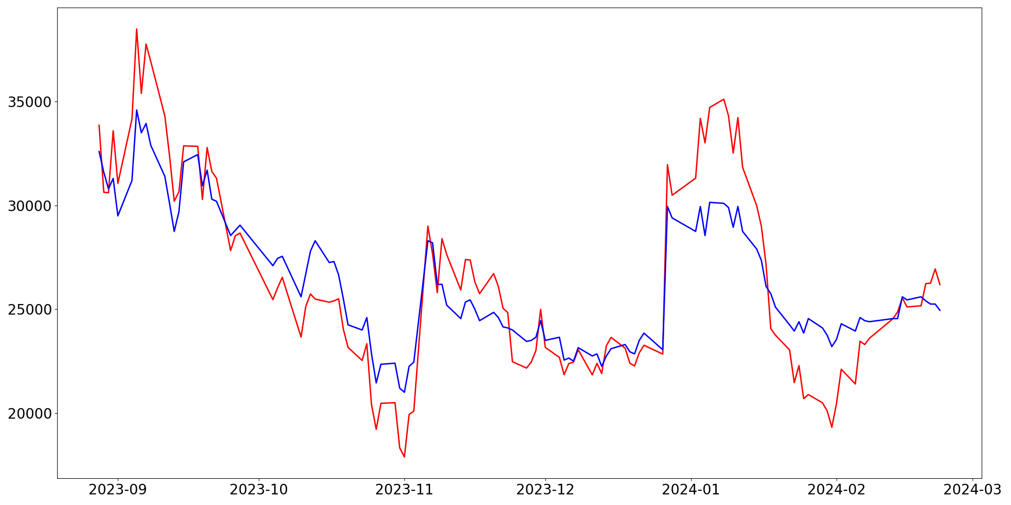 [ - : 실제값(종가) / - : 예측값(종가) ]