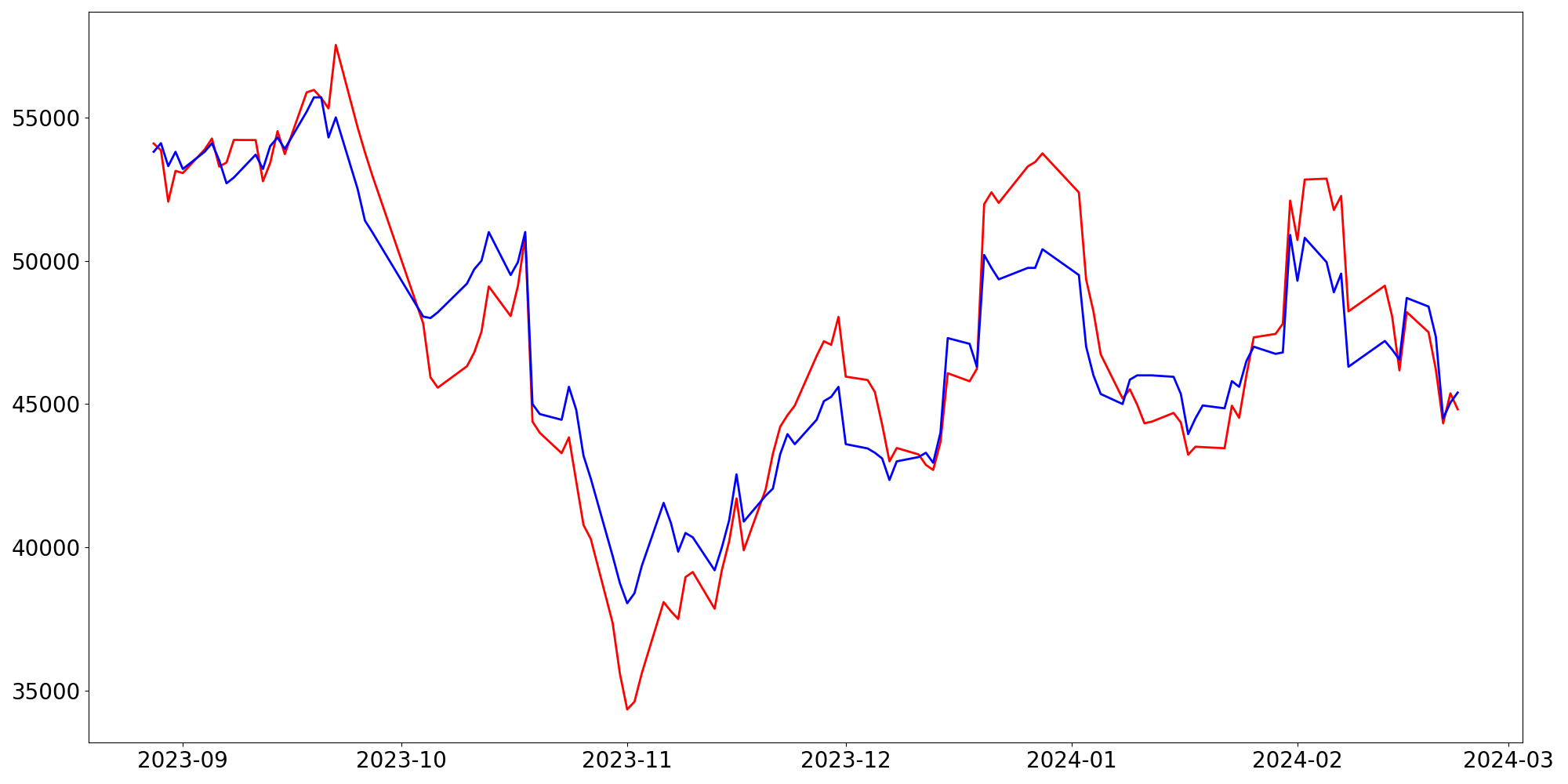 [ - : 실제값(종가) / - : 예측값(종가) ]