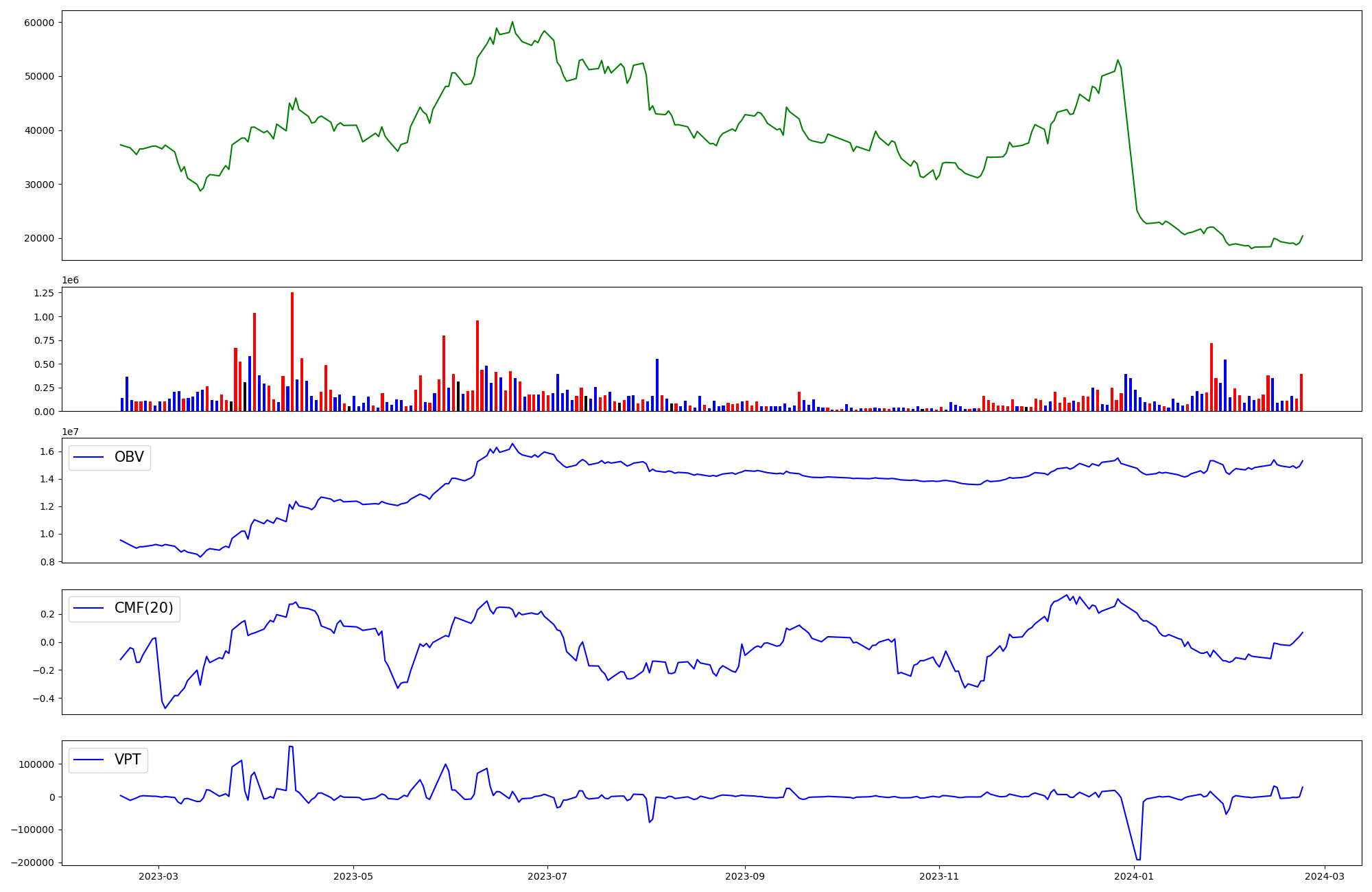 | OBV | CMF | VPT | |