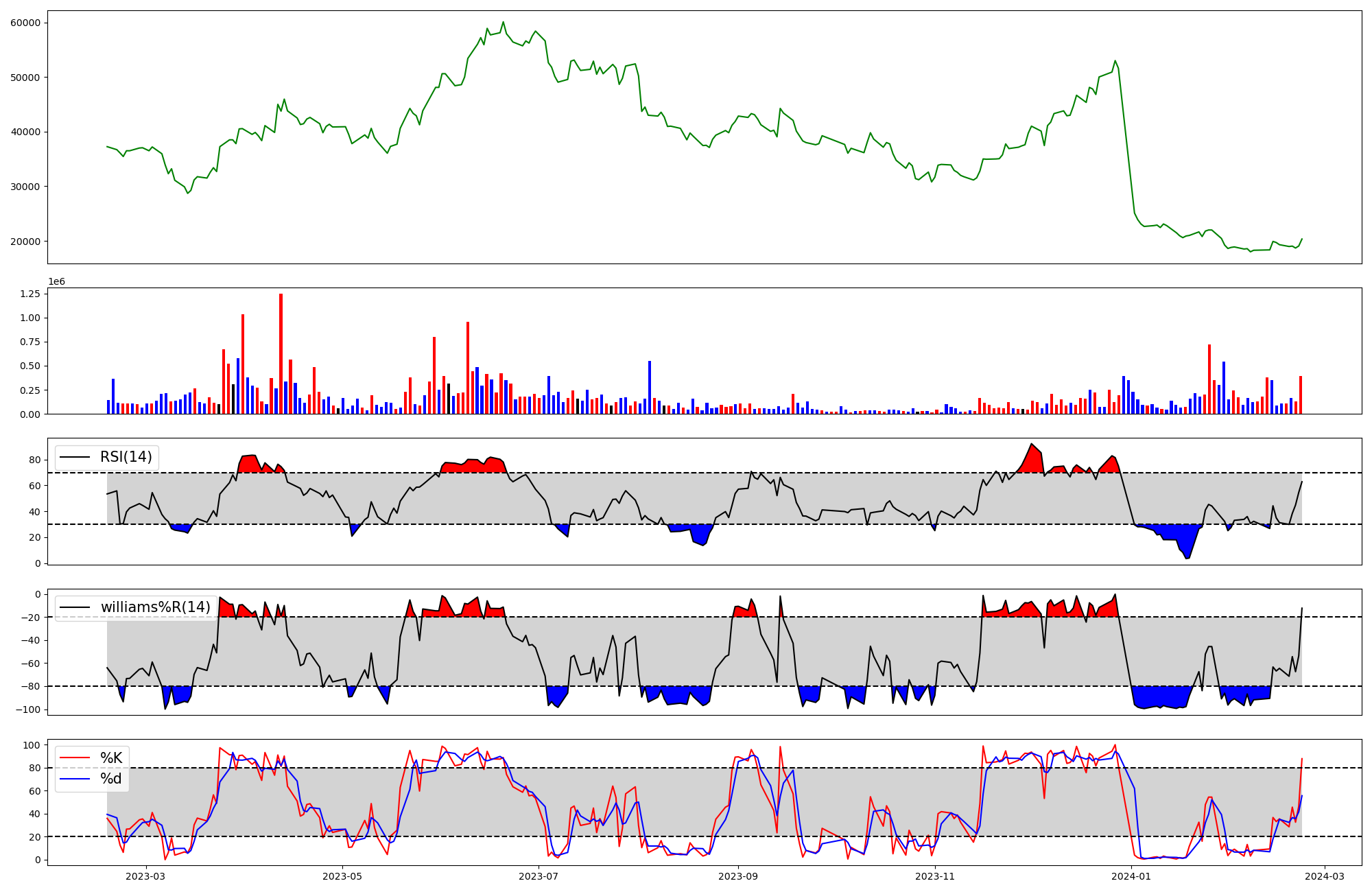 | RSI | Williams %R | stochastic(%K) | |
