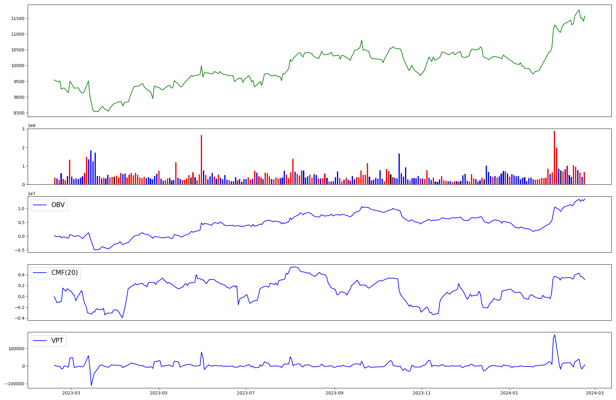 | OBV | CMF | VPT | |