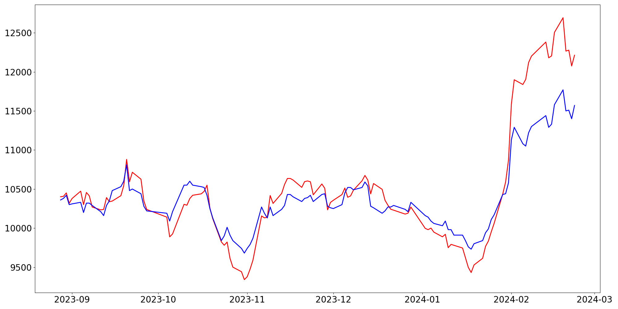 [ - : 실제값(종가) / - : 예측값(종가) ]