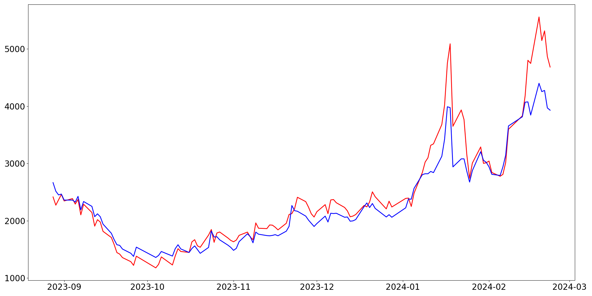 [ - : 실제값(종가) / - : 예측값(종가) ]