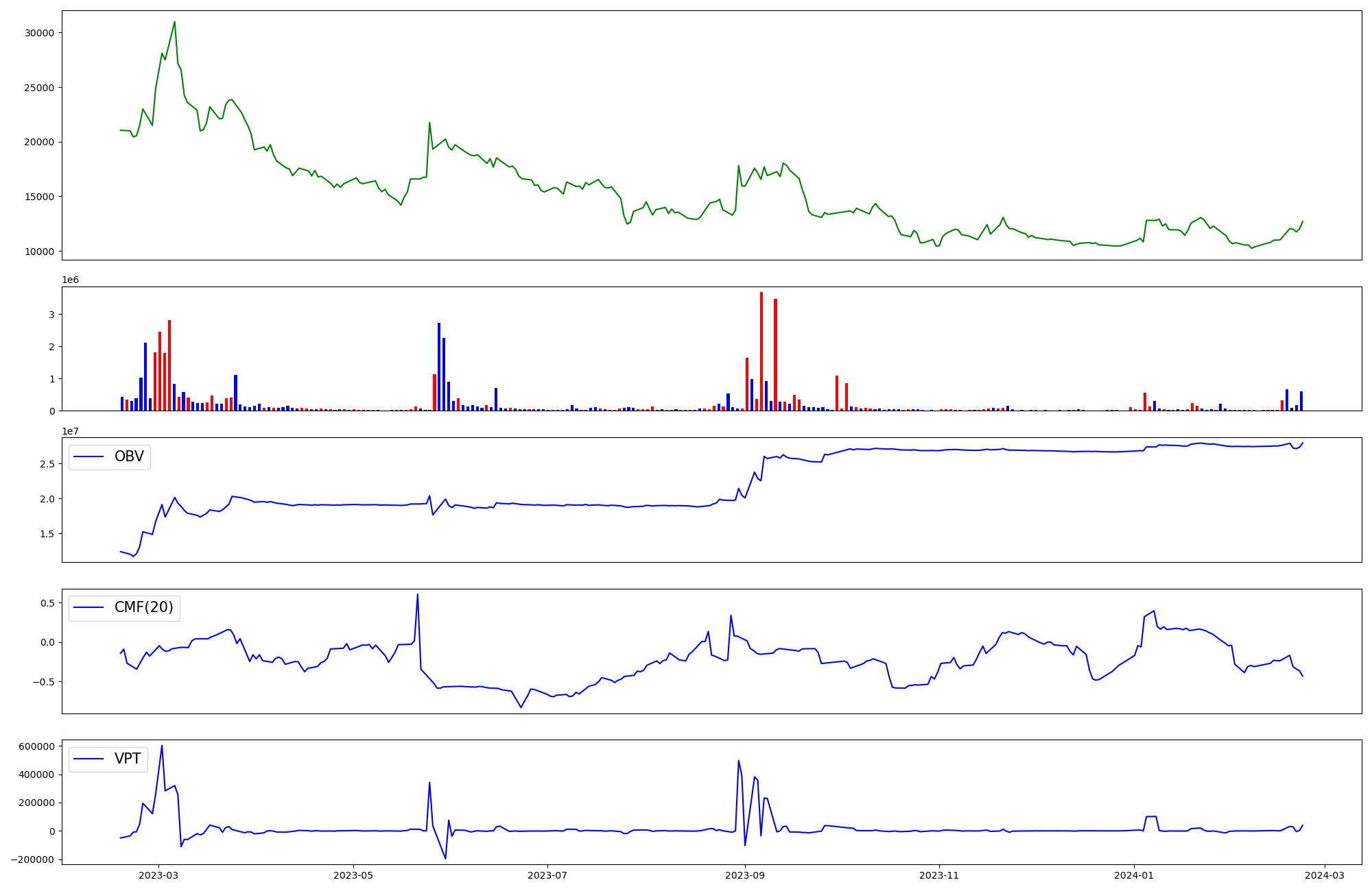 | OBV | CMF | VPT | |