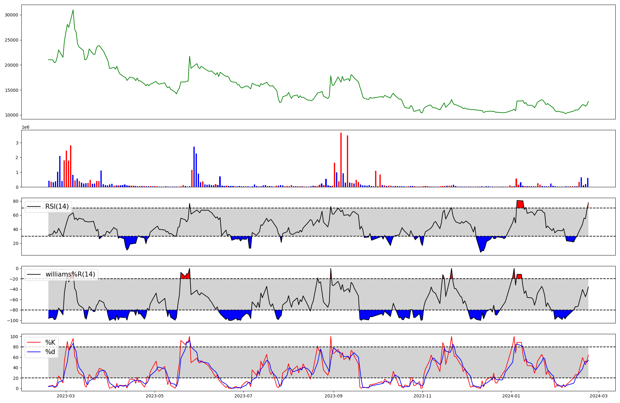 | RSI | Williams %R | stochastic(%K) | |