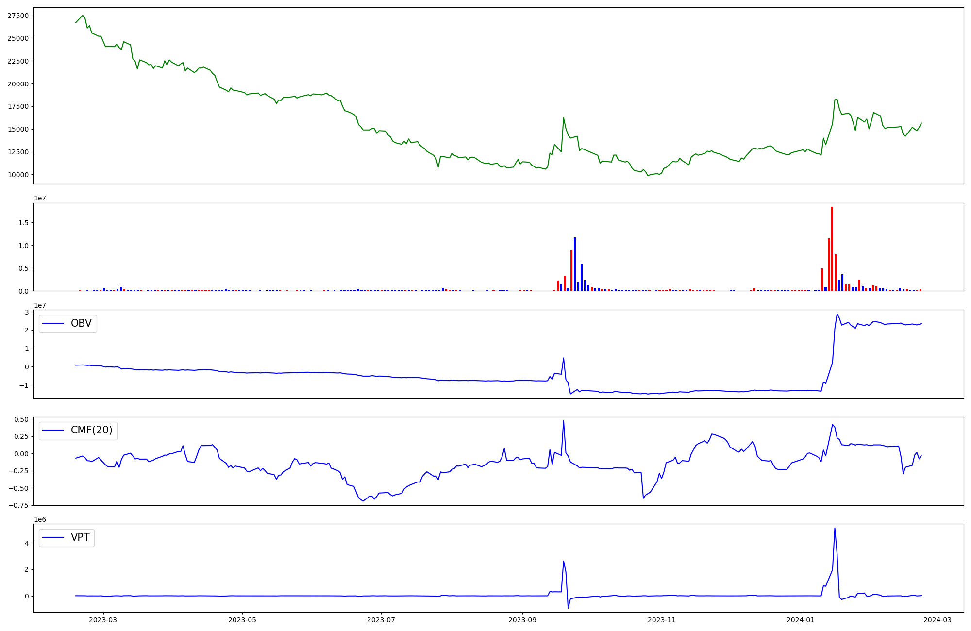 | OBV | CMF | VPT | |