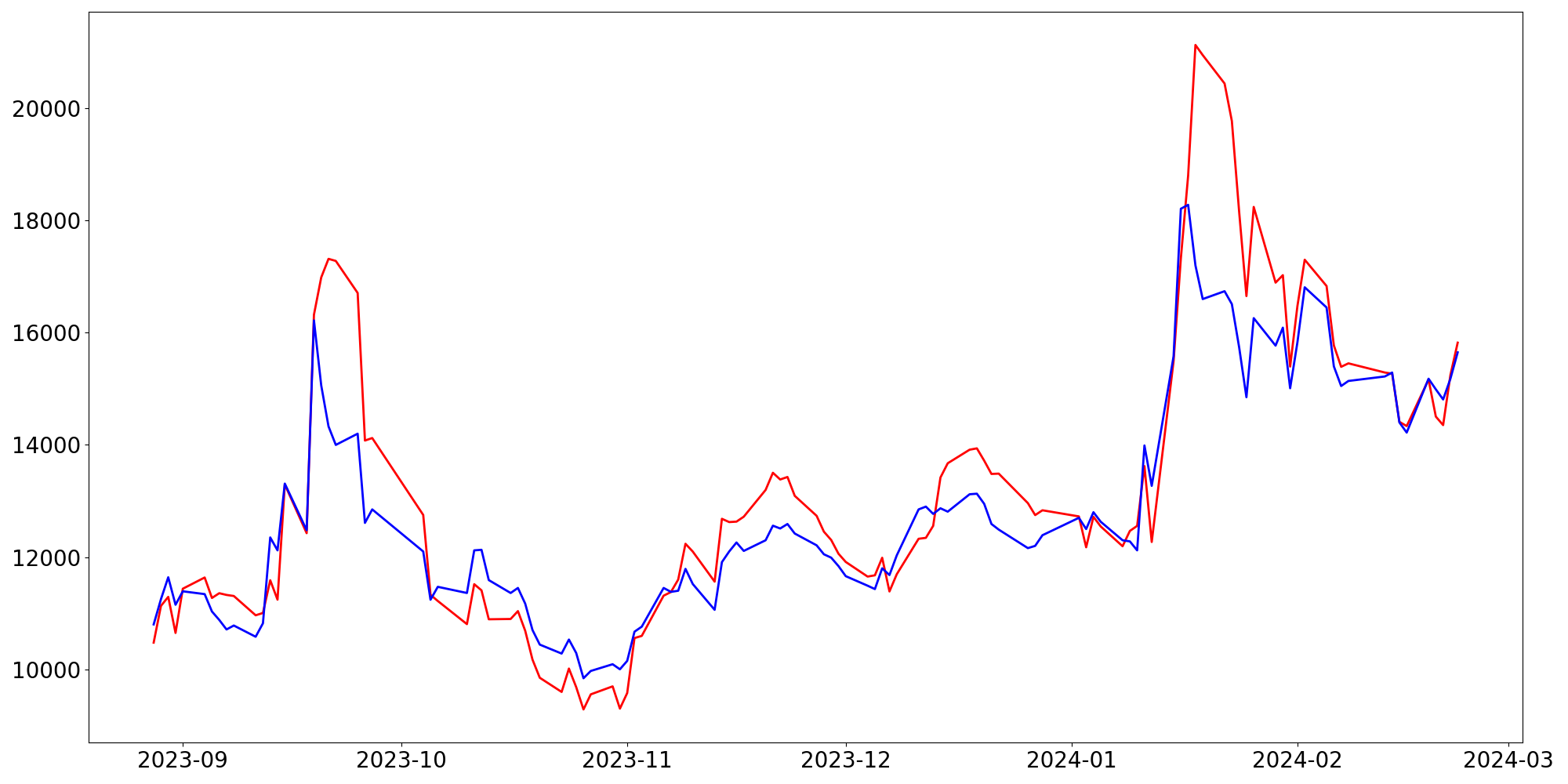 [ - : 실제값(종가) / - : 예측값(종가) ]