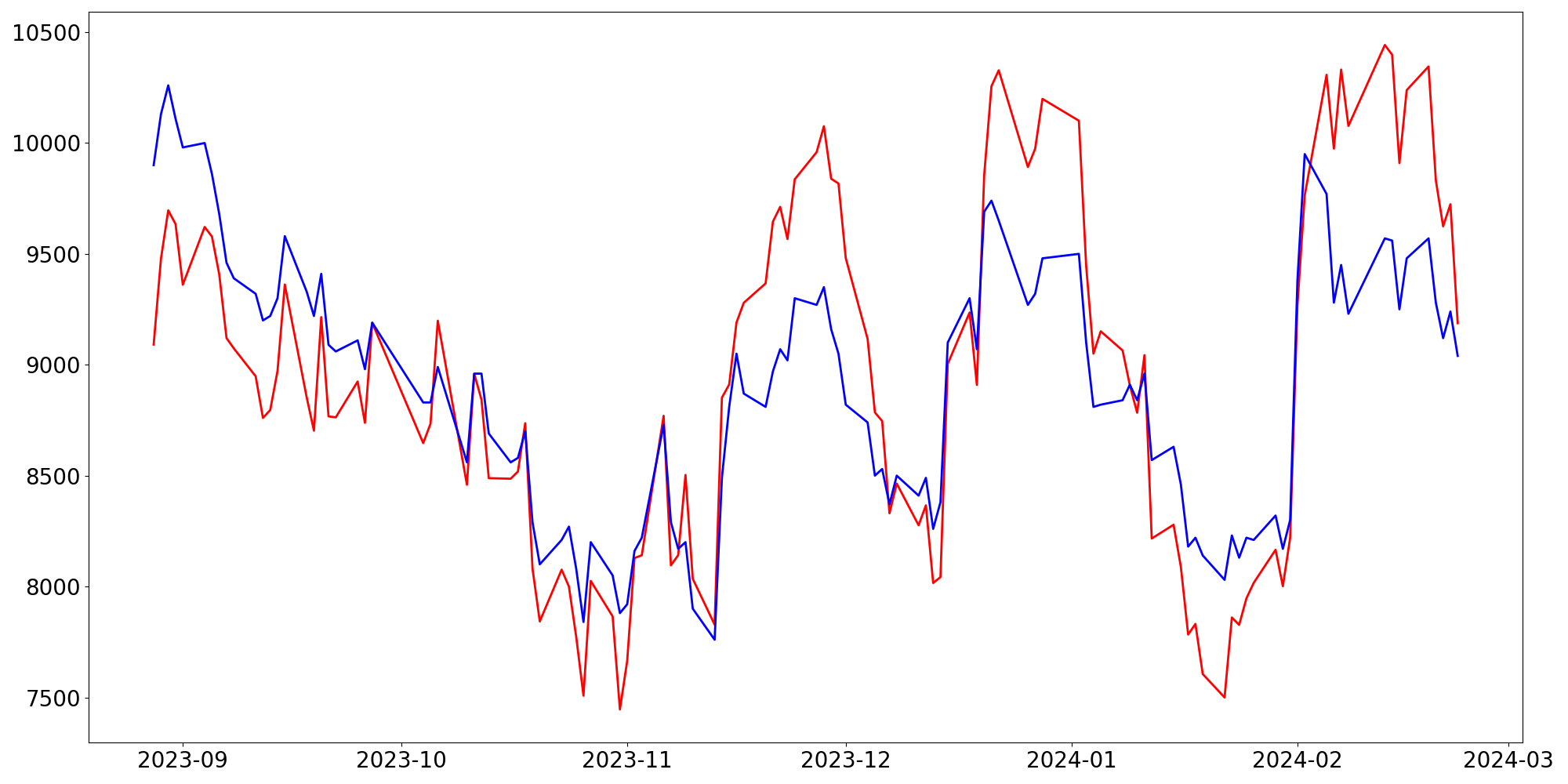 [ - : 실제값(종가) / - : 예측값(종가) ]