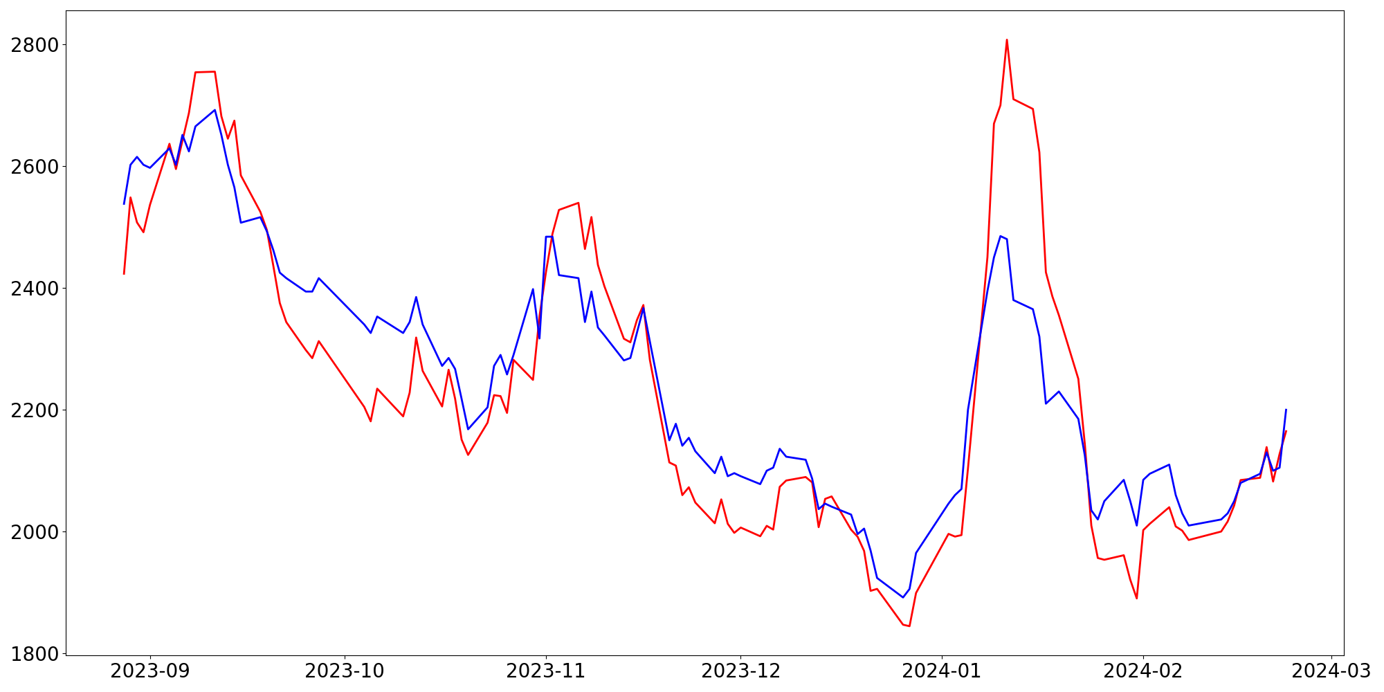 [ - : 실제값(종가) / - : 예측값(종가) ]