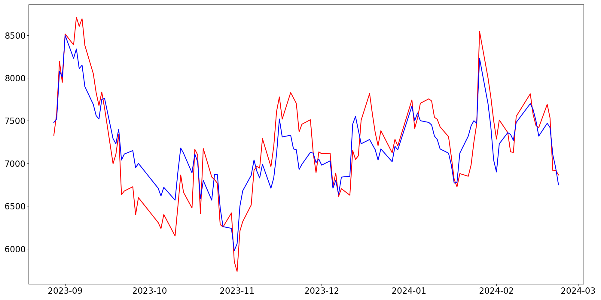 [ - : 실제값(종가) / - : 예측값(종가) ]