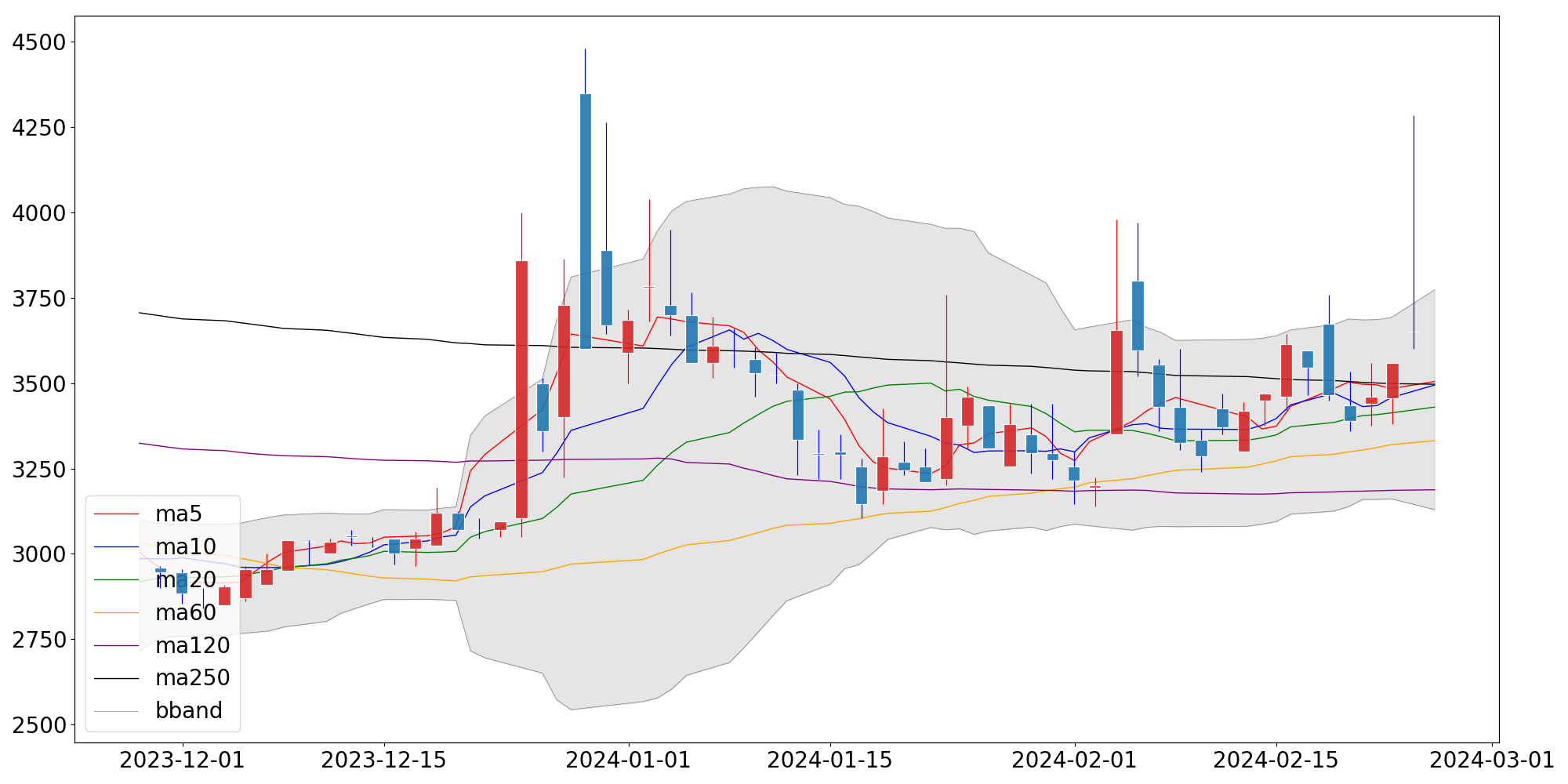 □ 오늘의 종가 : 3,650 (+90, +2.53%)