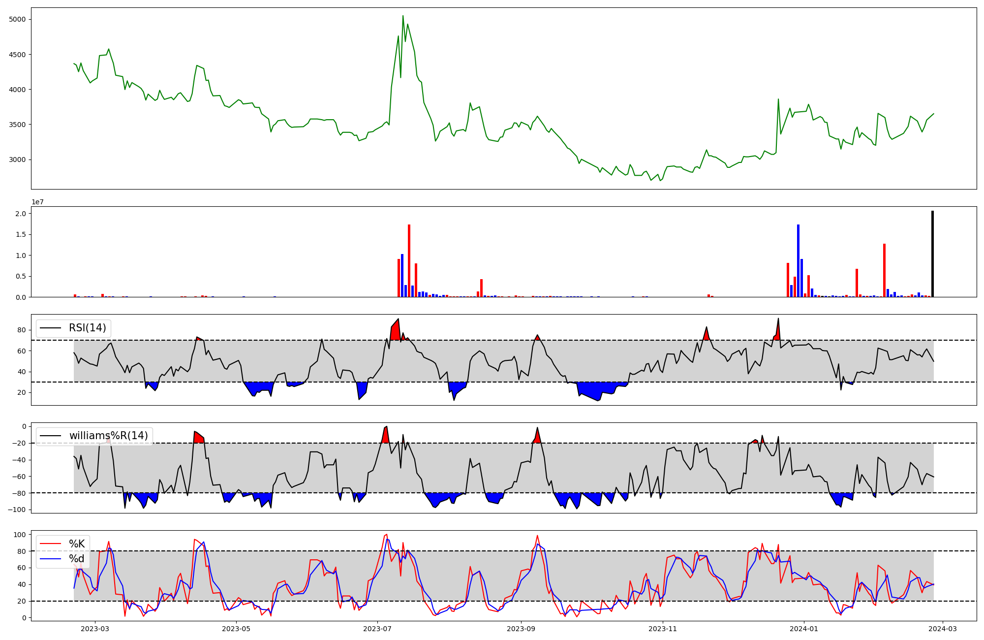 | RSI | Williams %R | stochastic(%K) | |