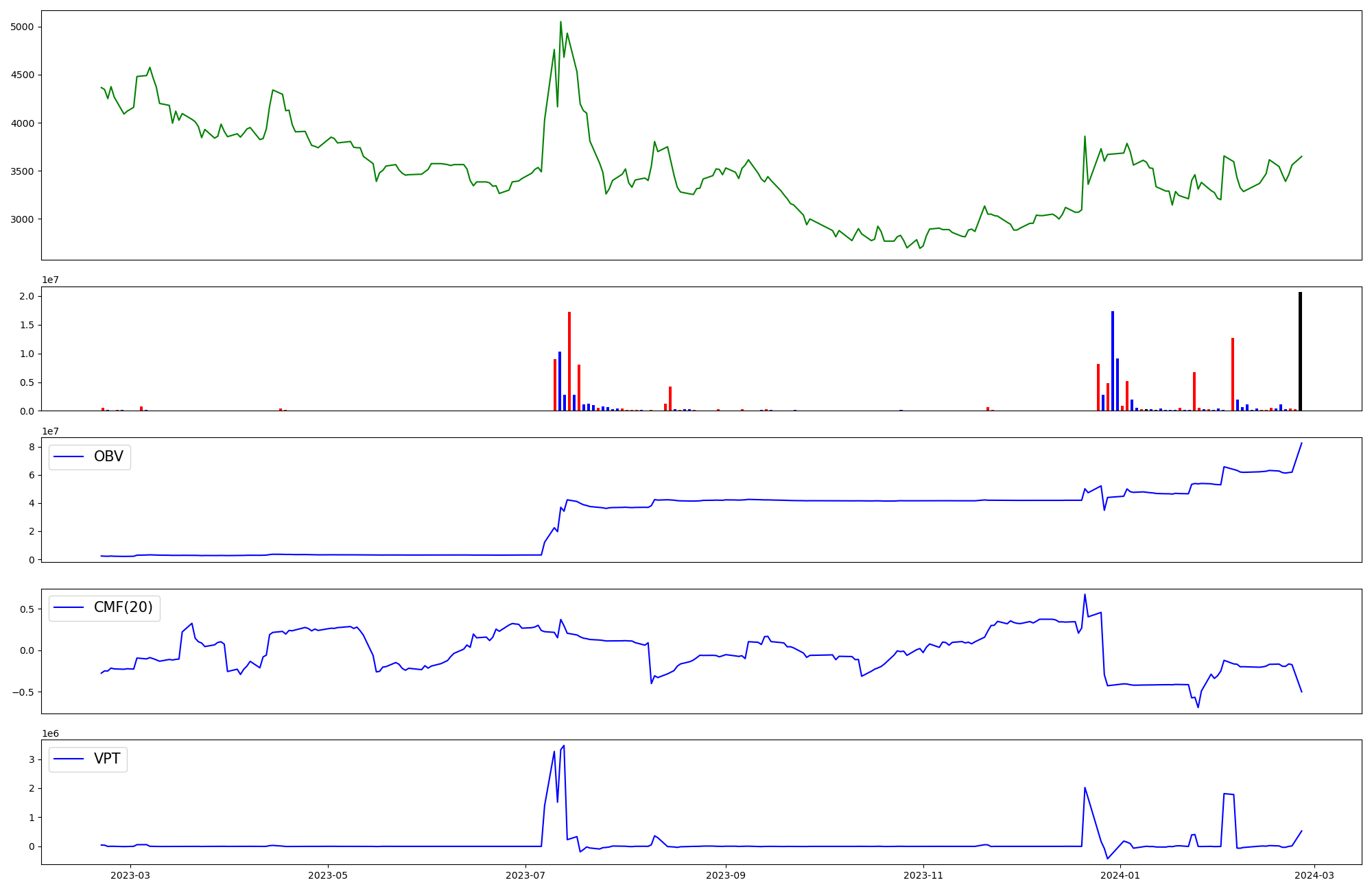 | OBV | CMF | VPT | |