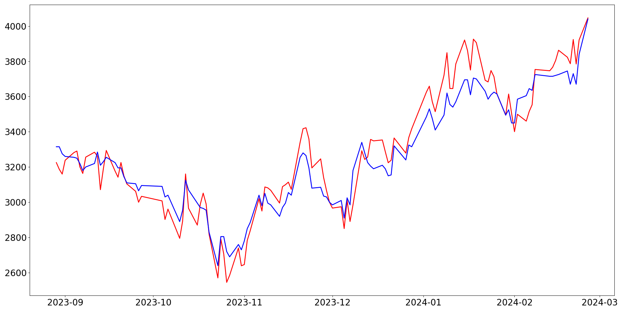 [ - : 실제값(종가) / - : 예측값(종가) ]