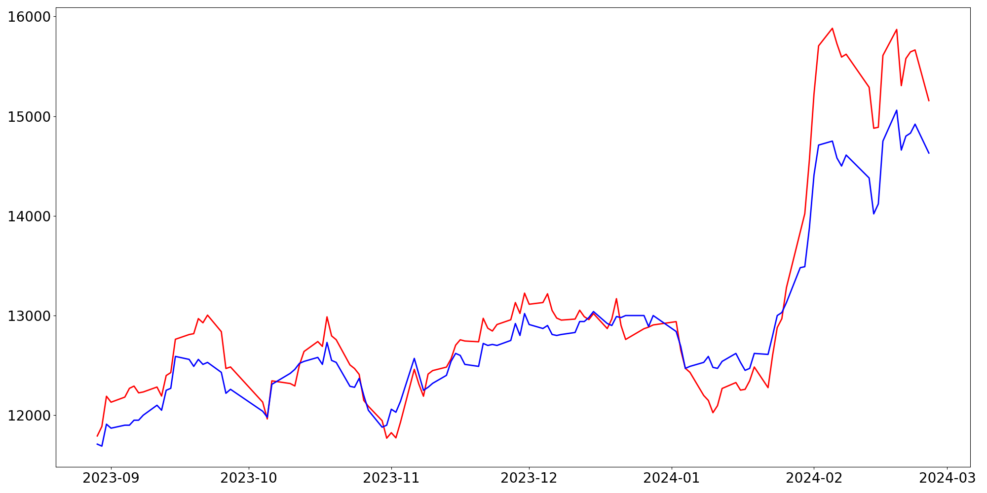 [ - : 실제값(종가) / - : 예측값(종가) ]