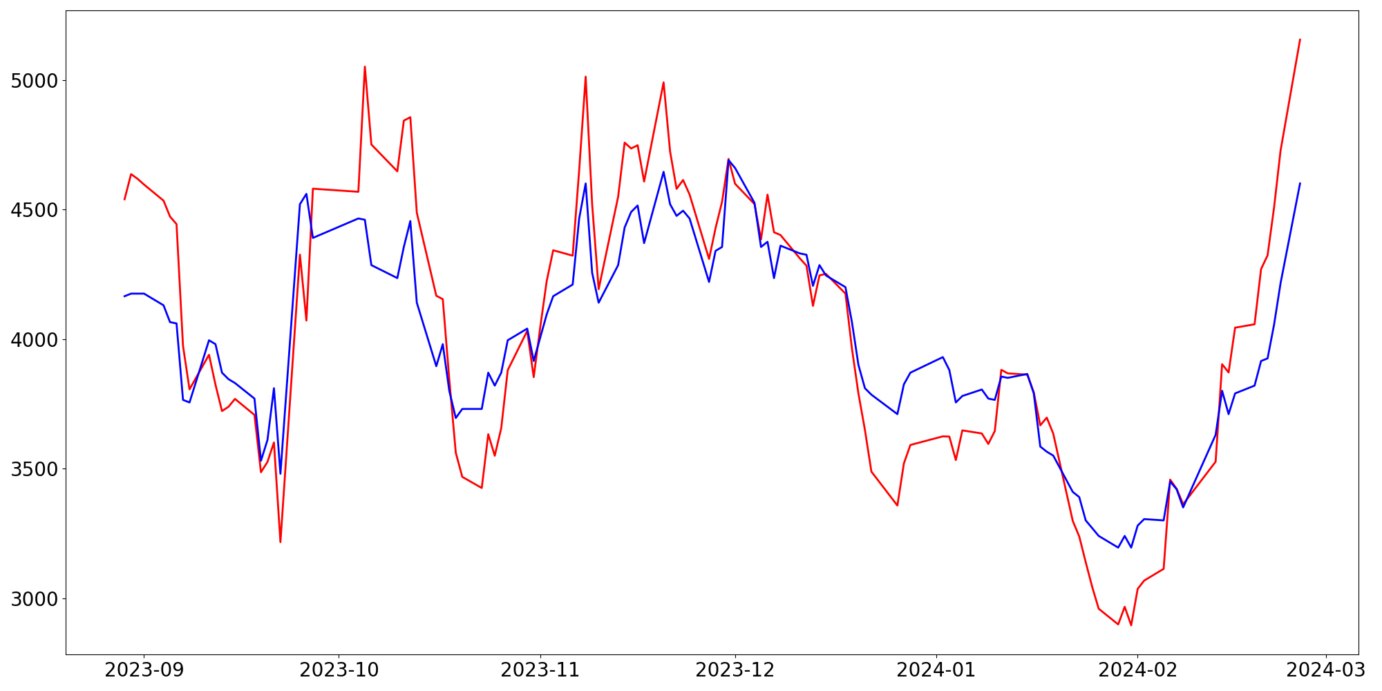 [ - : 실제값(종가) / - : 예측값(종가) ]