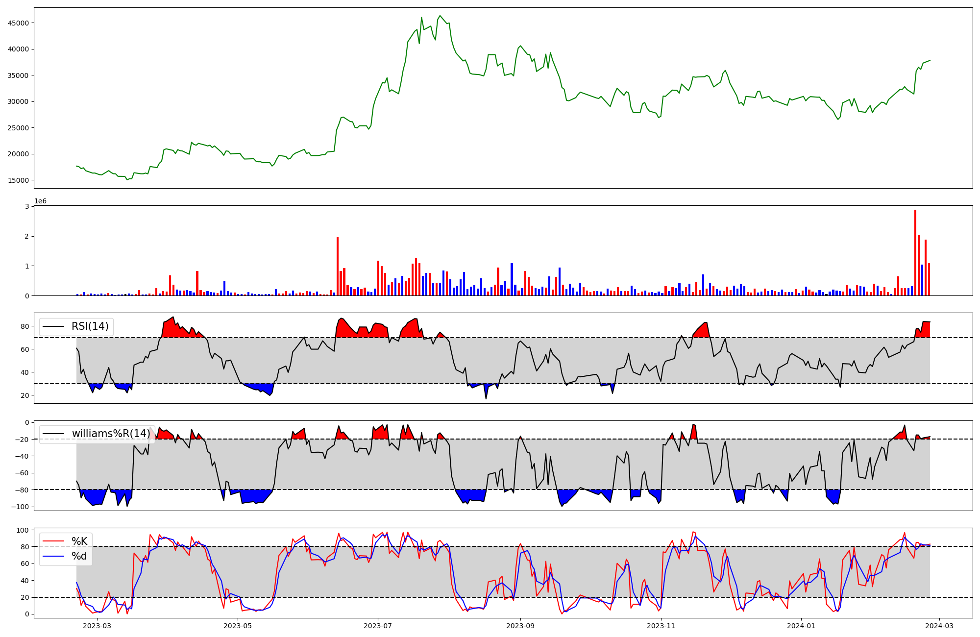 | RSI | Williams %R | stochastic(%K) | |