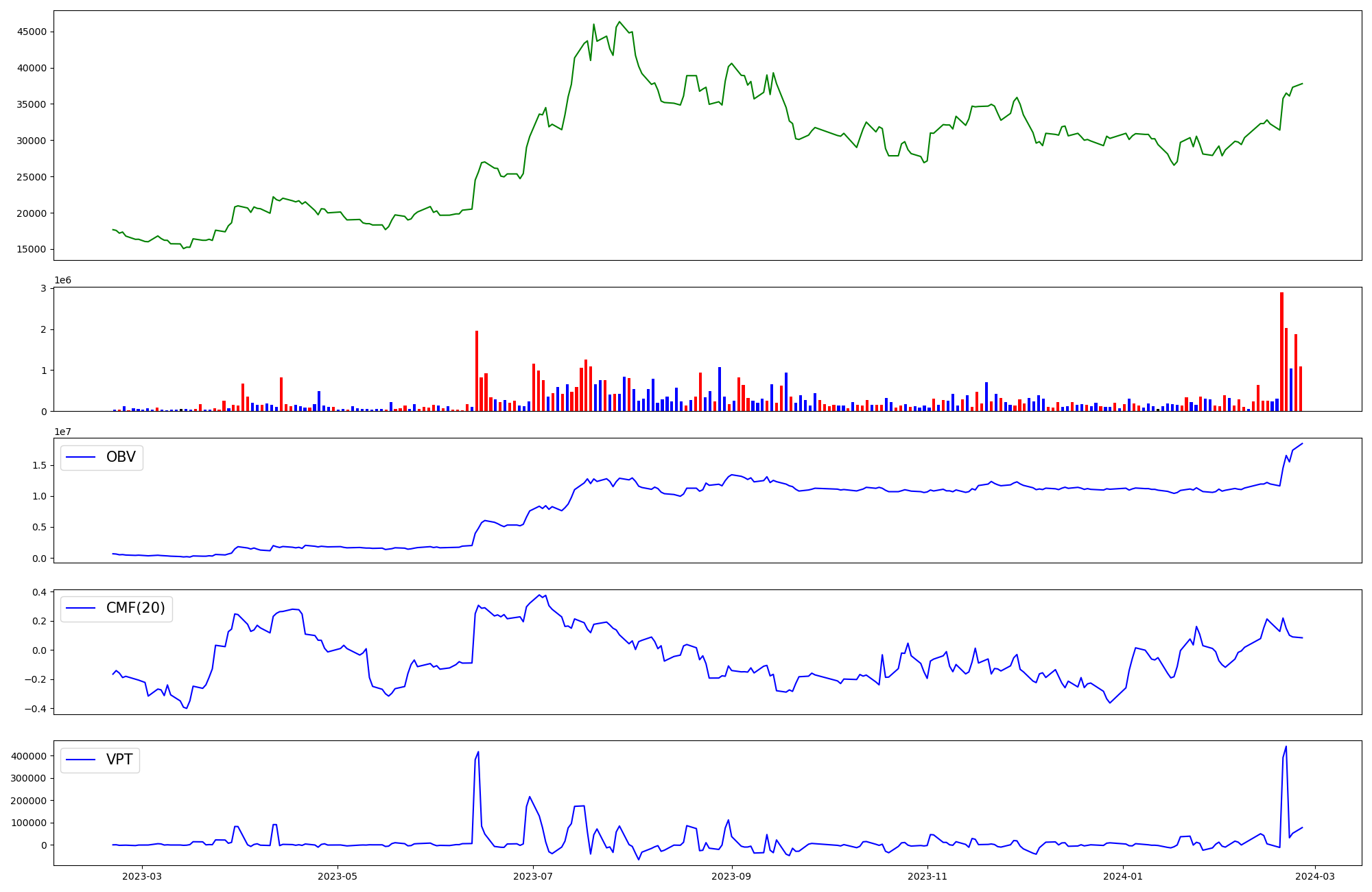| OBV | CMF | VPT | |