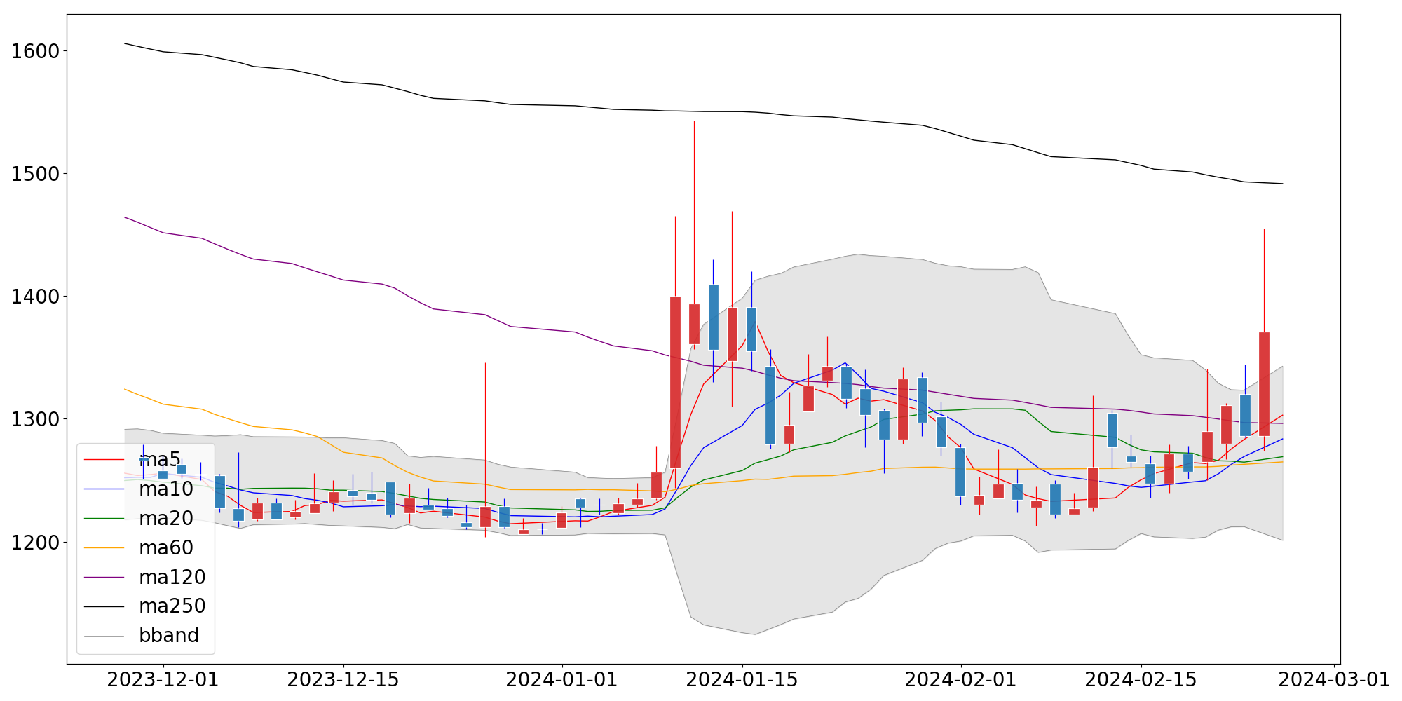□ 오늘의 종가 : 1,371 (+85, +6.61%)