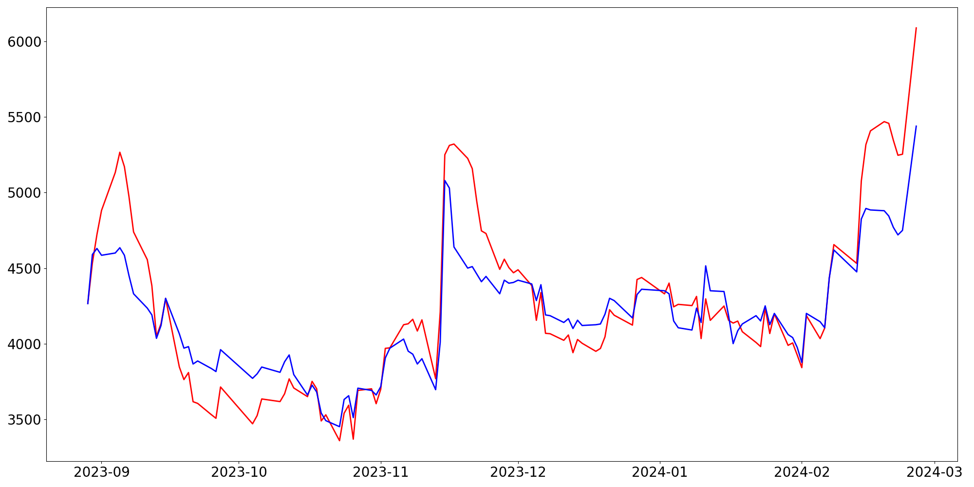 [ - : 실제값(종가) / - : 예측값(종가) ]