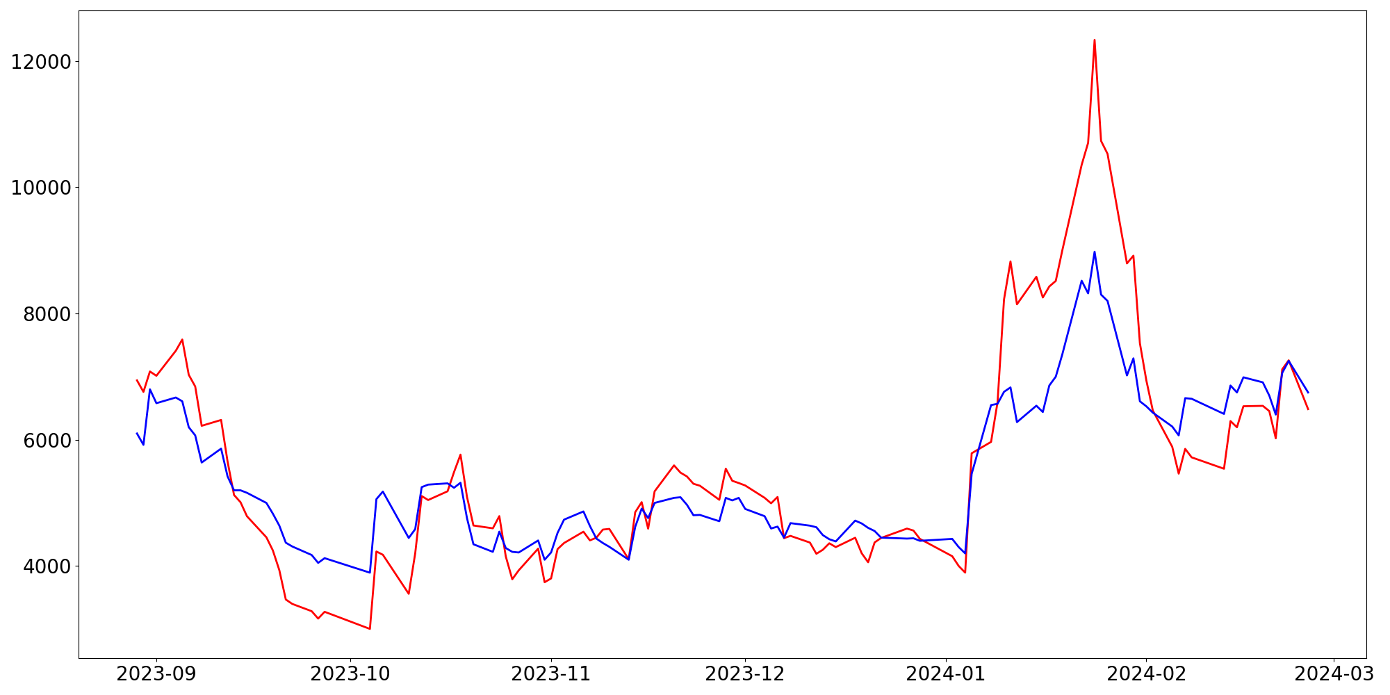 [ - : 실제값(종가) / - : 예측값(종가) ]