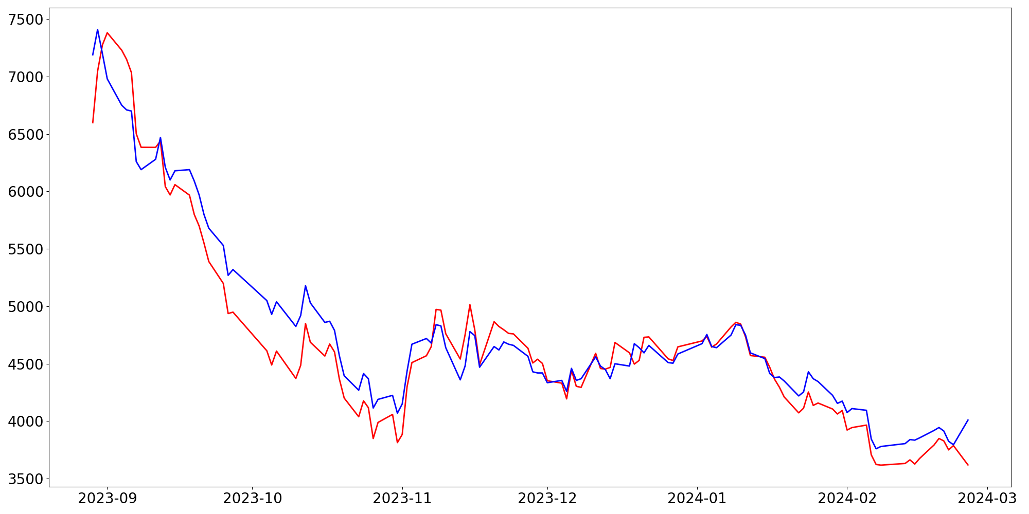 [ - : 실제값(종가) / - : 예측값(종가) ]