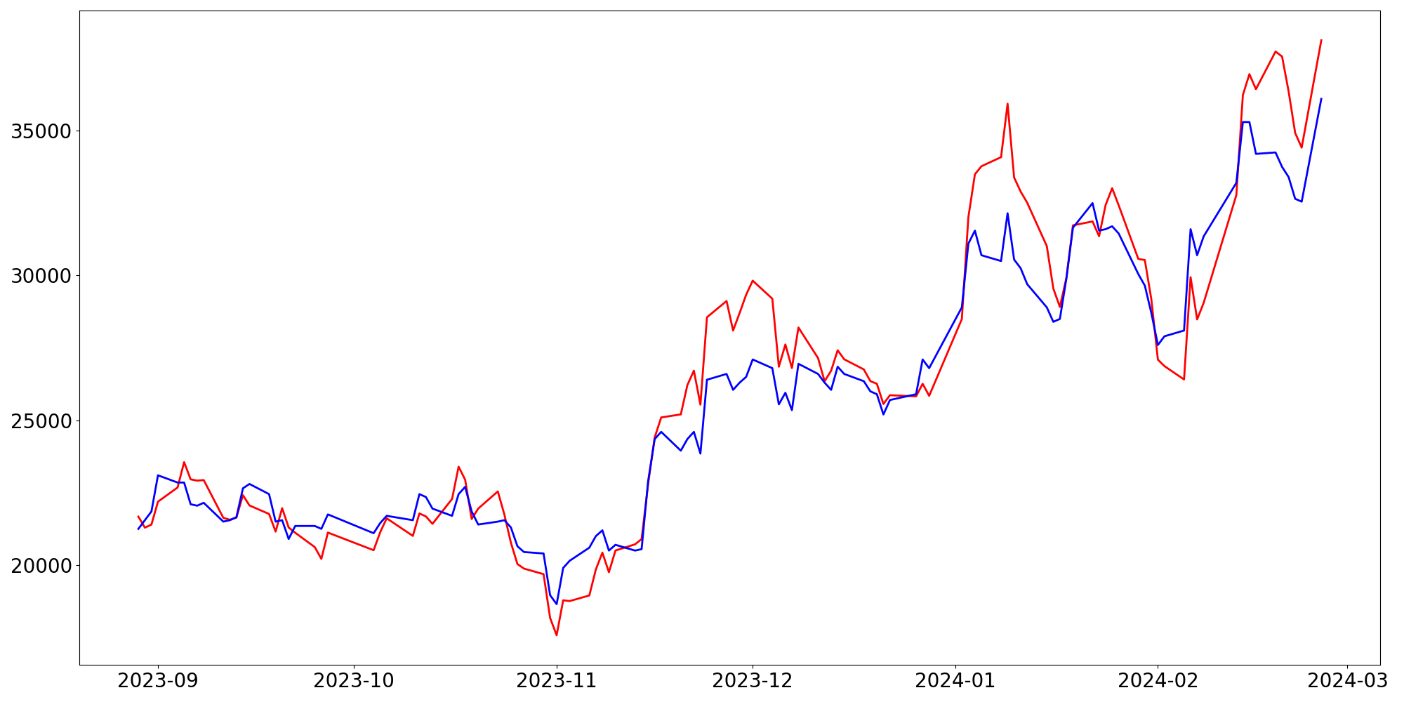[ - : 실제값(종가) / - : 예측값(종가) ]