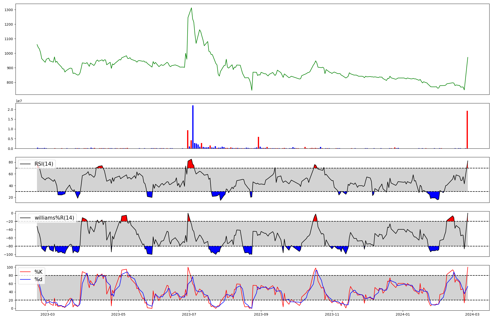 | RSI | Williams %R | stochastic(%K) | |