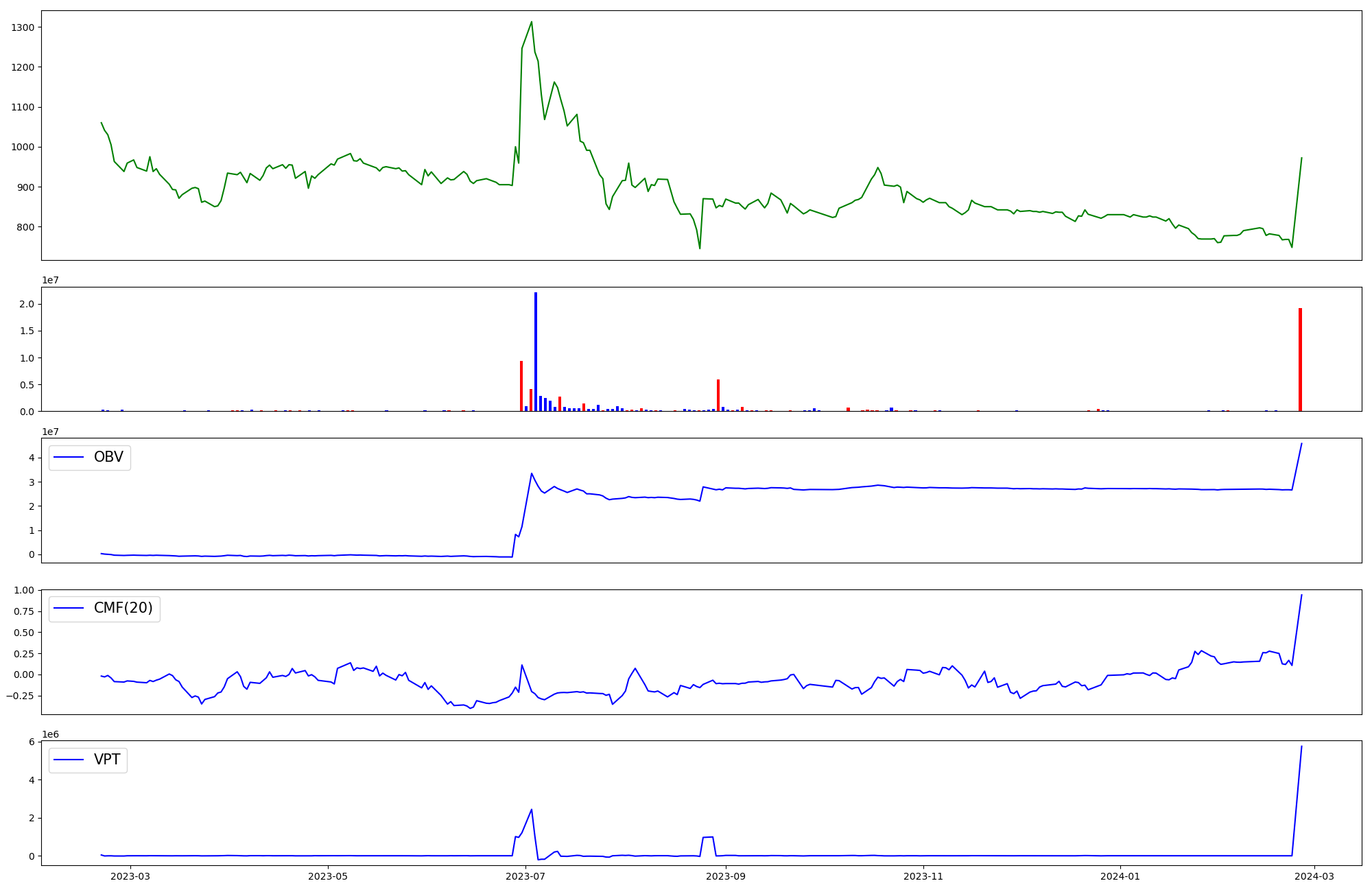 | OBV | CMF | VPT | |
